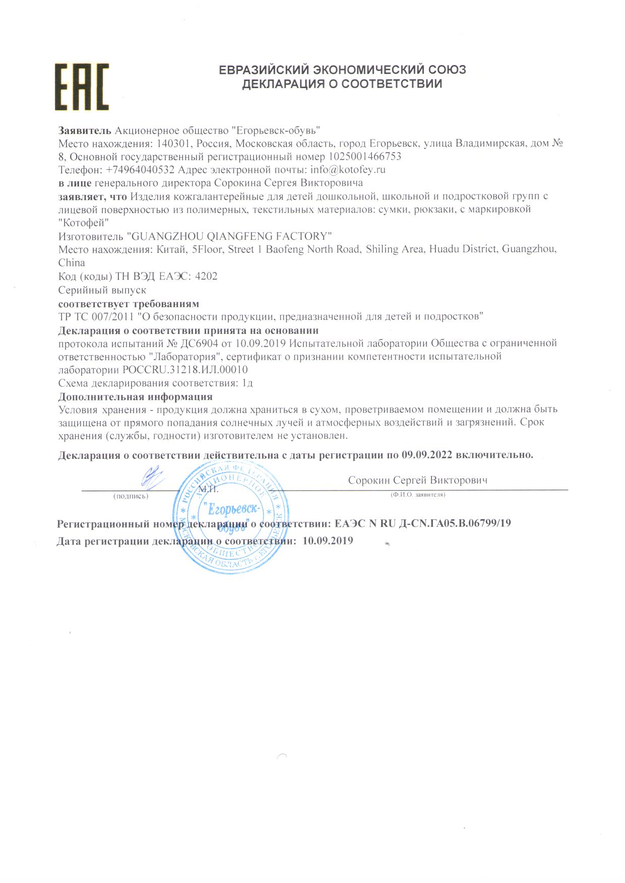ЕАЭС N RU Д-CN.ГА05.В.06799/19