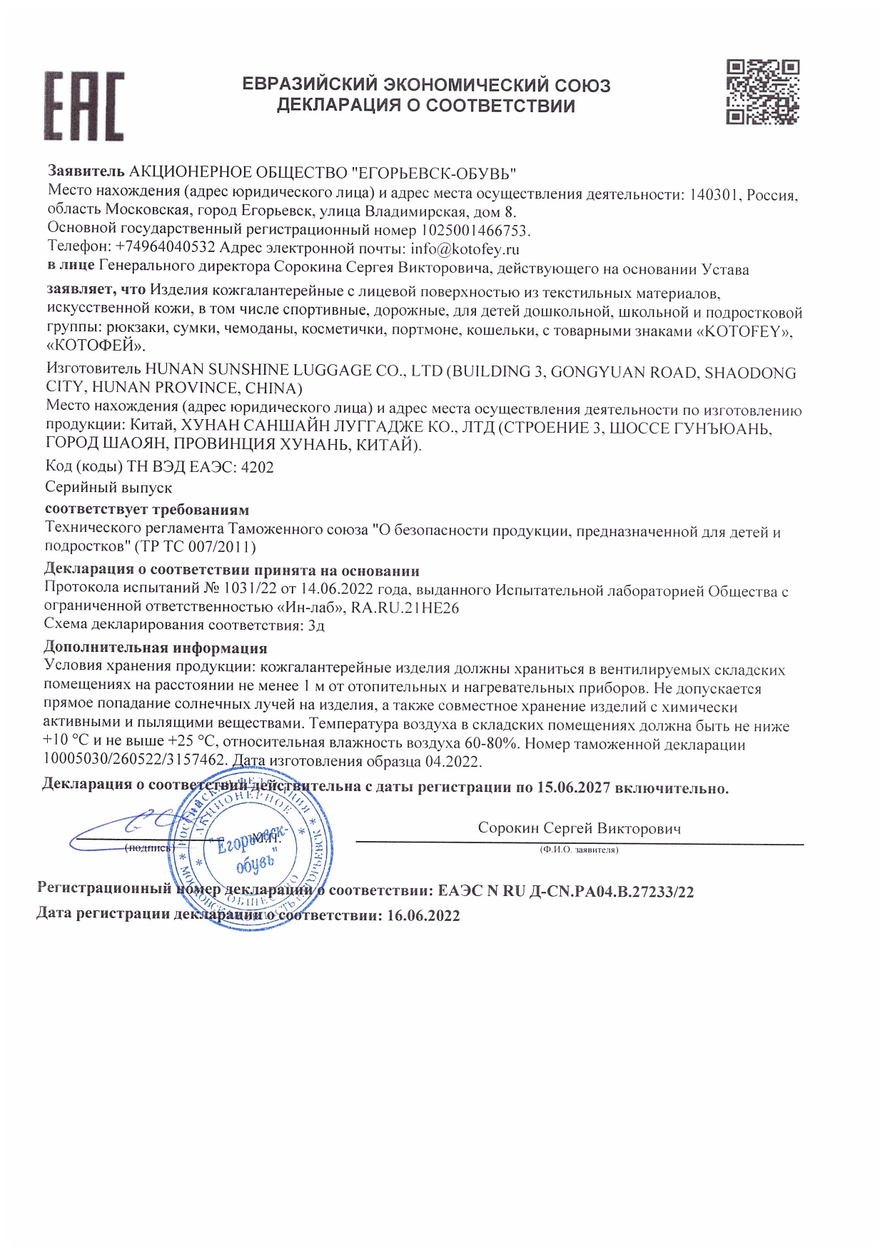 Размеры рюкзака и его малый вес идеально подходят для детей в возрасте от 2-х до 7 лет. В него поместится сменная обувь и одежда.