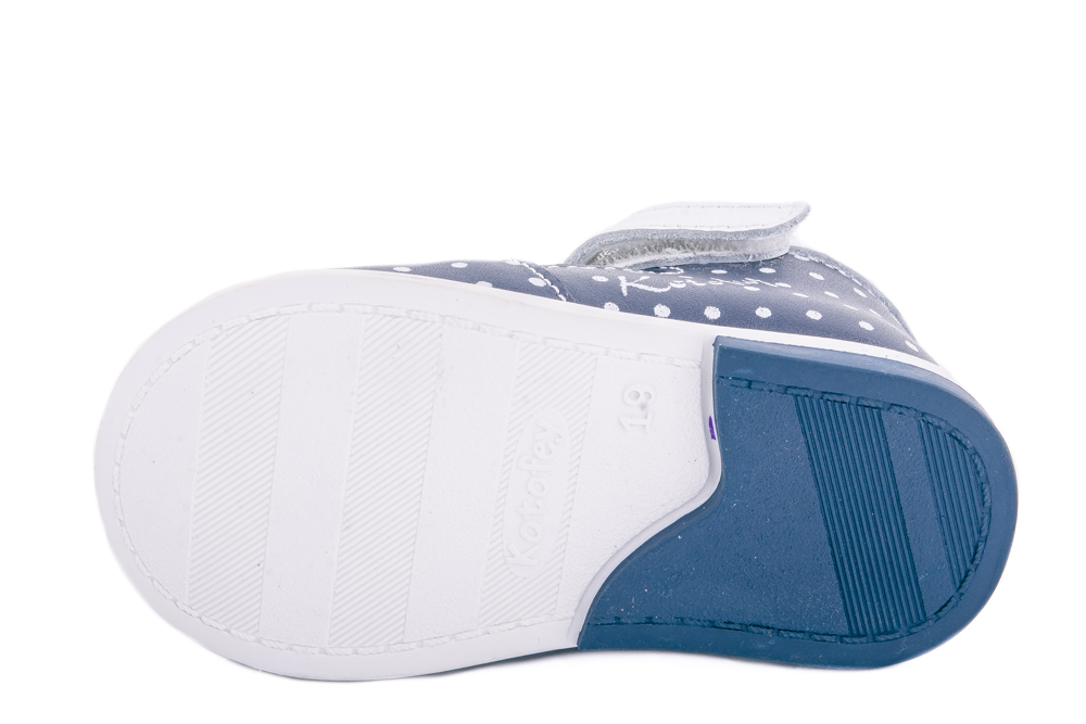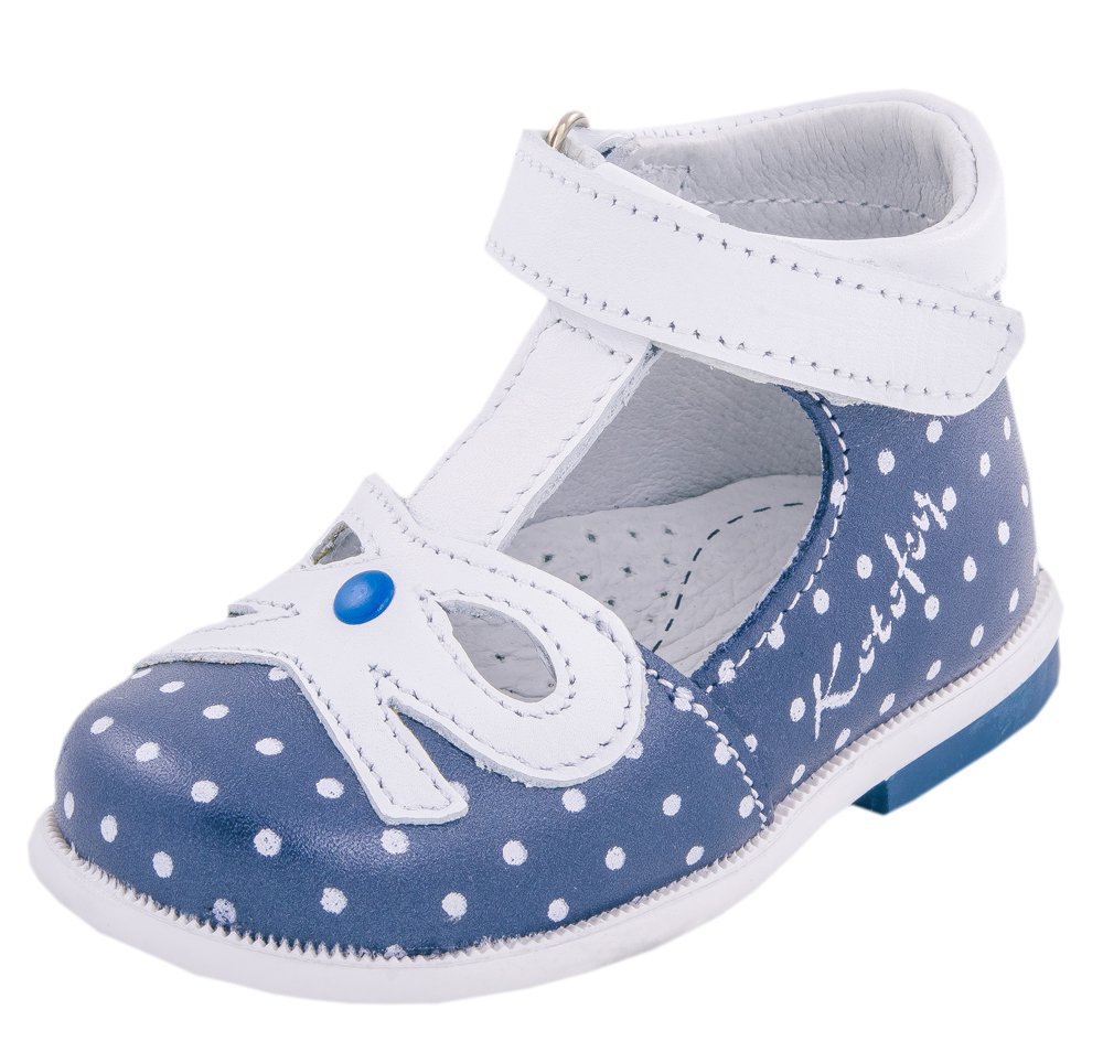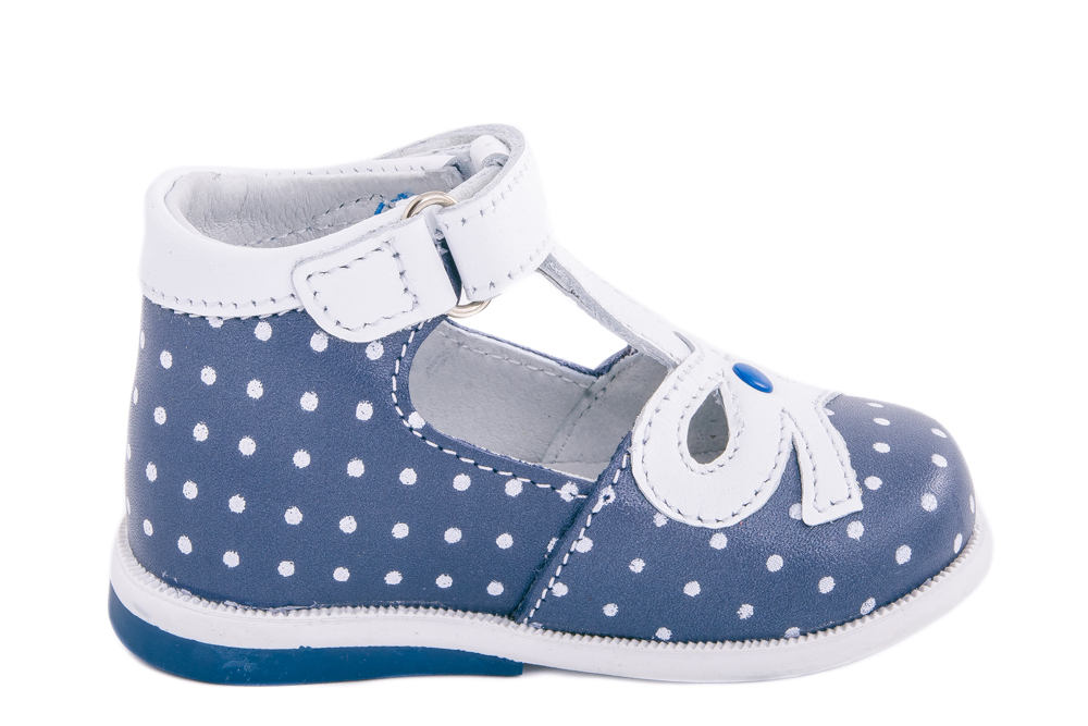 Чудесные туфельки для маленькой девочки, из мягкой кожи, украшенной принтом «горошек». Благодаря натуральным материалам и сквозным отверстиям в носочной части внутри обуви создается благоприятный микроклимат и ножка не потеет. Удобный ремешок на липучке позволяет быстро обувать и снимать обувь. Мягкий манжет создает комфорт при ходьбе и предотвращает натирание ножки ребенка. Подошва с небольшим каблучком легкая и гибкая. Эти милые туфельки отлично подойдут как на каждый день, так и для торжественного мероприятия или утренника.