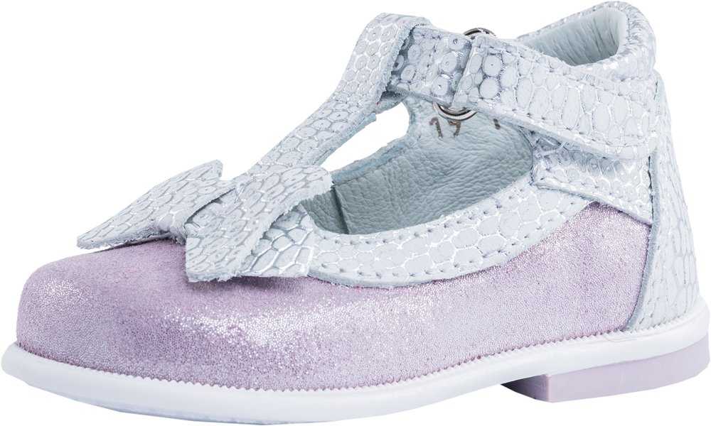 Чудесные туфельки для маленькой девочки из мягкой металлизированной кожи декорированы милым бантиком . Удобный ремешок на липучке позволяет быстро обувать и снимать обувь. Мягкий манжет создает комфорт при ходьбе и предотвращает натирание ножки ребенка. Подошва с небольшим каблучком легкая и гибкая. Эти милые туфельки отлично подойдут как на каждый день, так и для торжественного мероприятия или утренника.