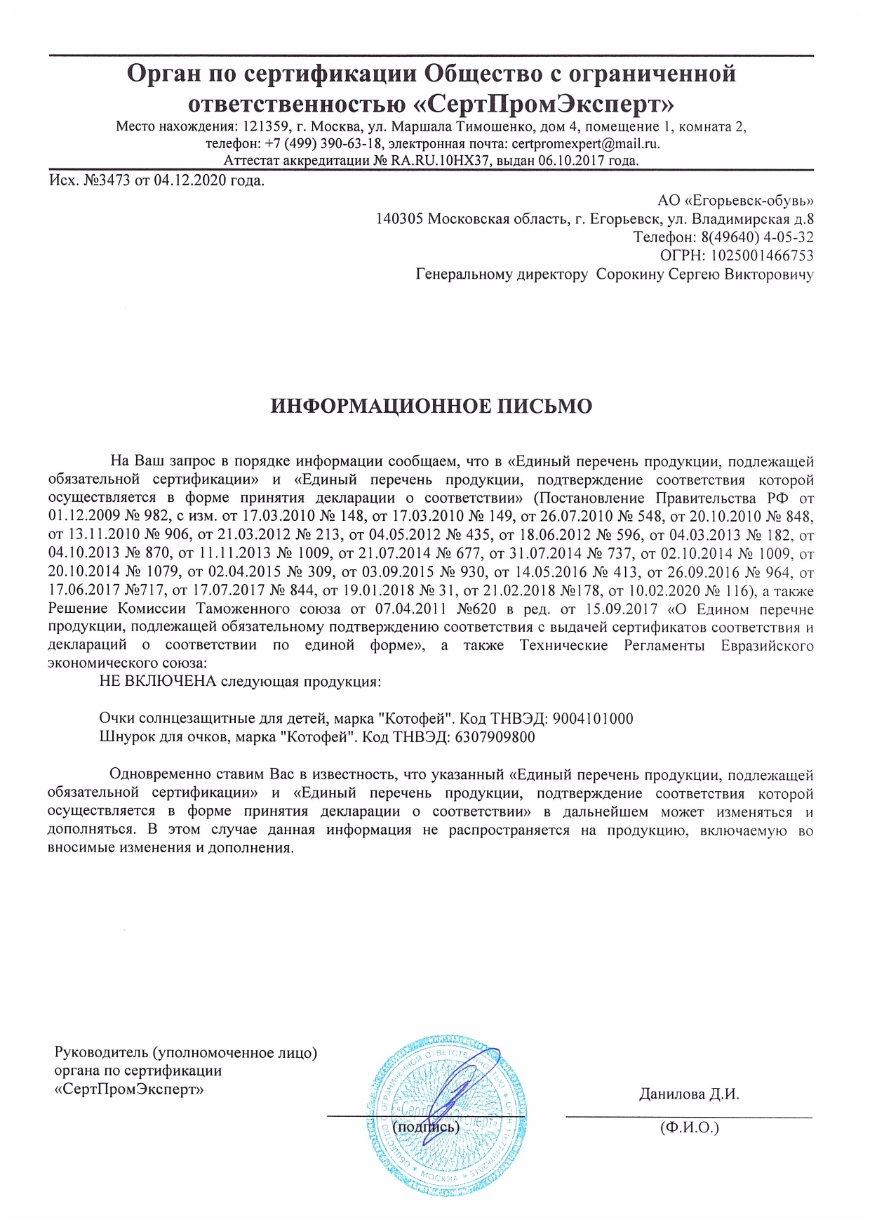 информационное письмо