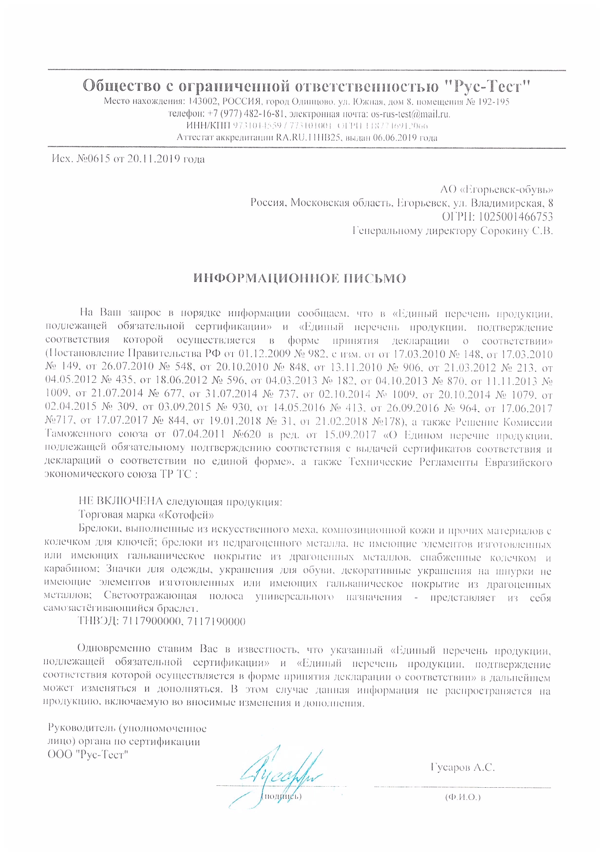 информационное письмо