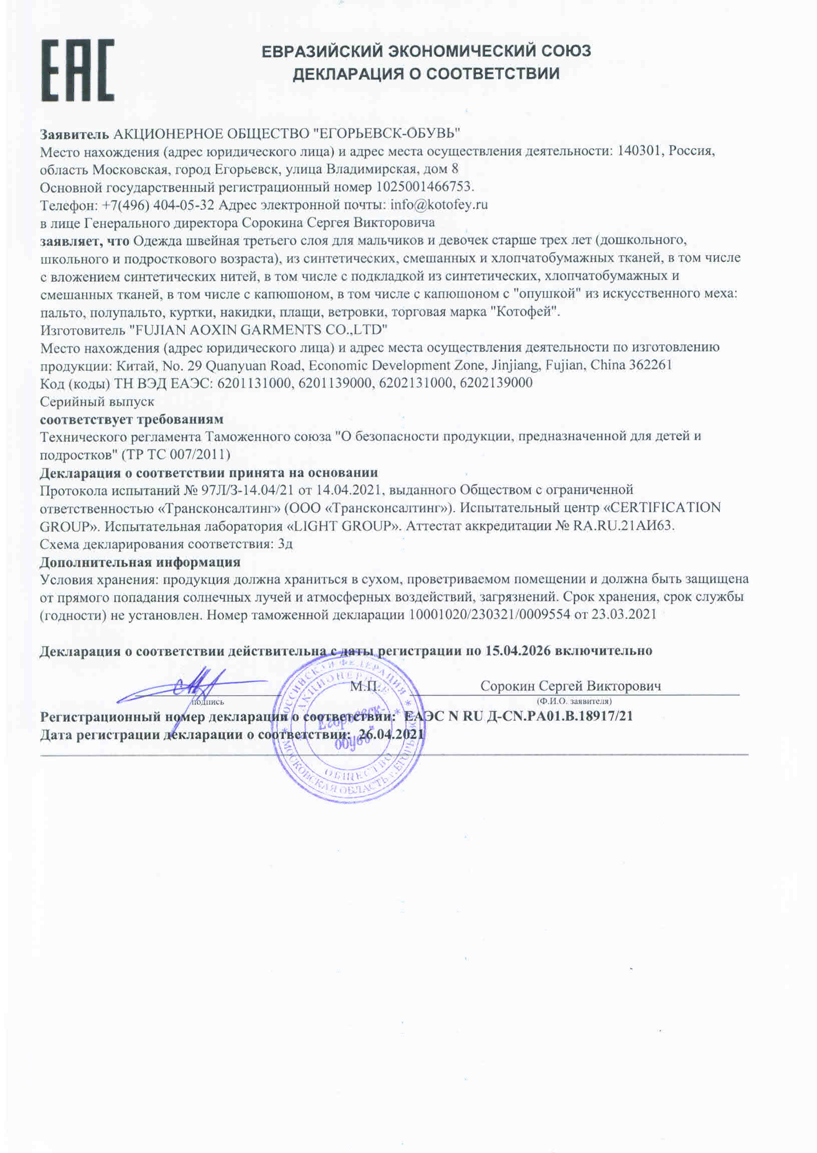 ЕАЭС N RU Д-CN.РА01.В.18917/21