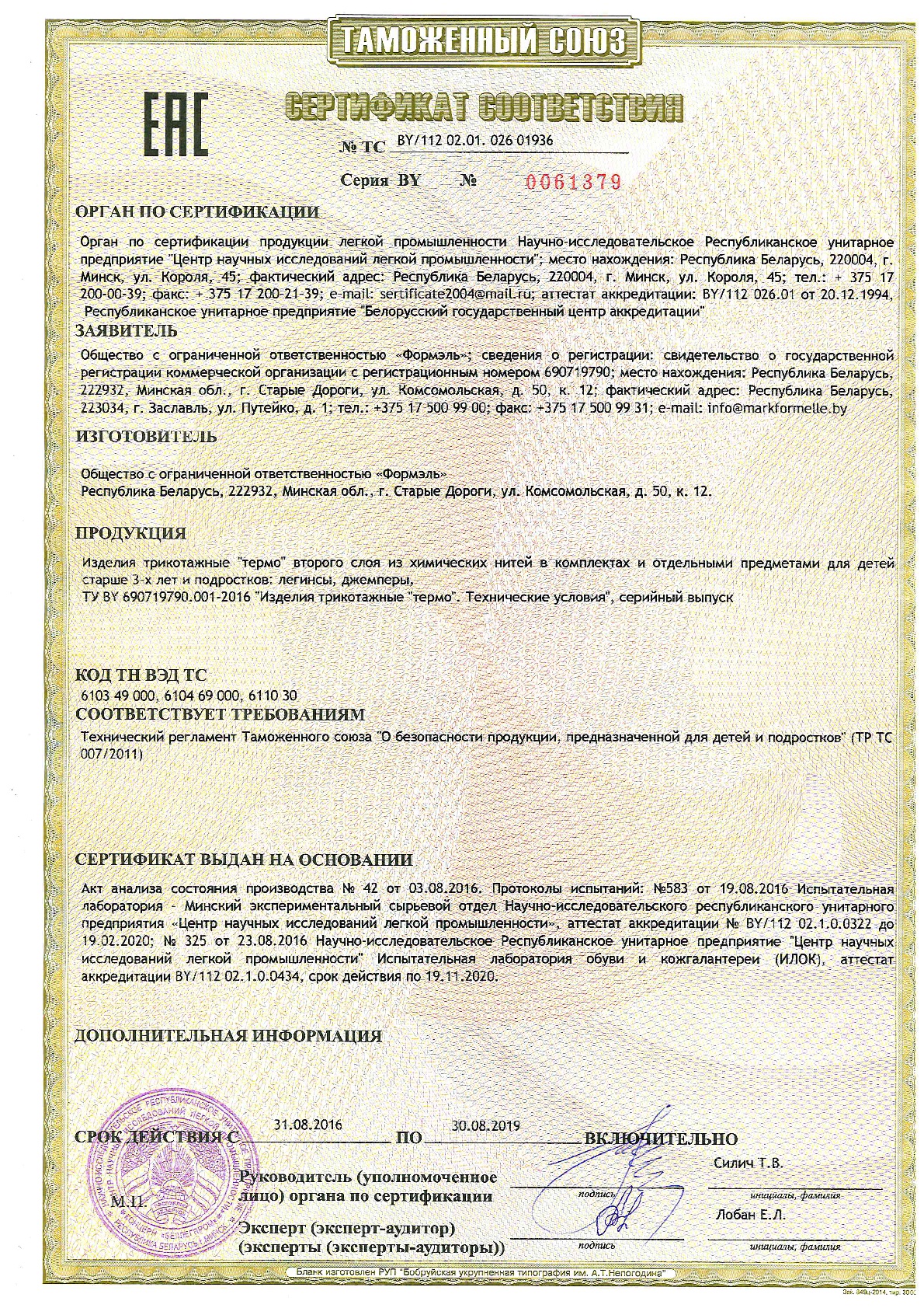 Термобельё «Mark Formelle» изготовлено из высококачественного полотна 50% Viloft® (вискоза) / 50% Trevira® (полиэстер).