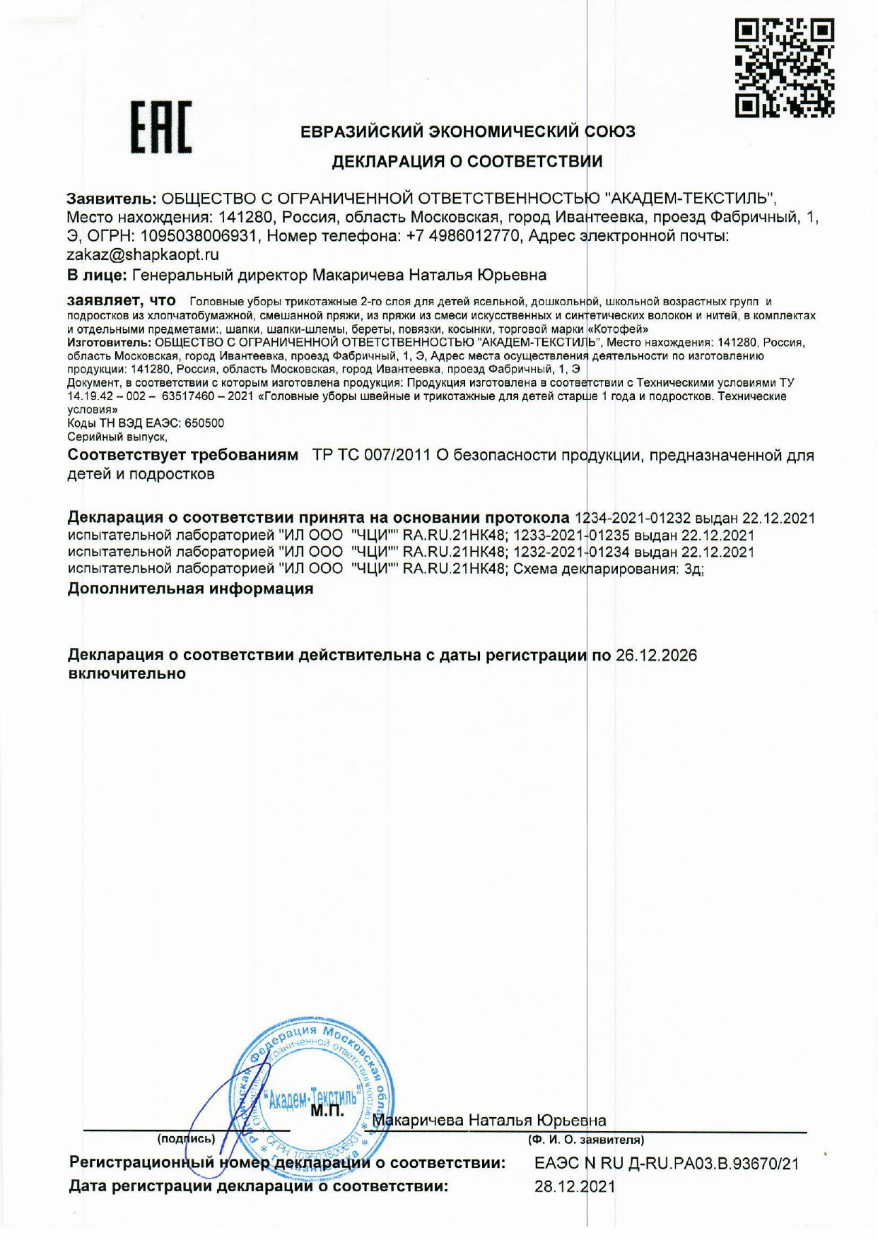 ТМ Котофей, Сделано в России.