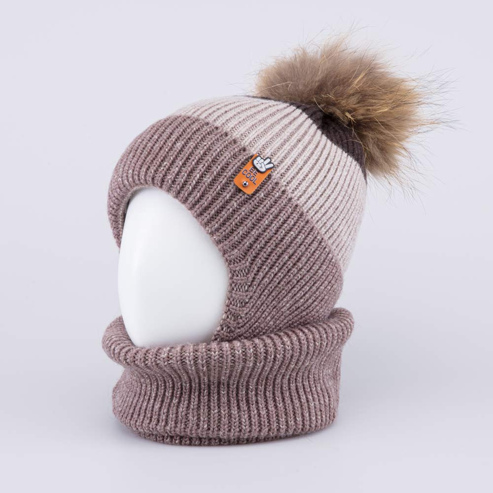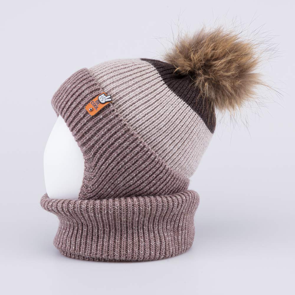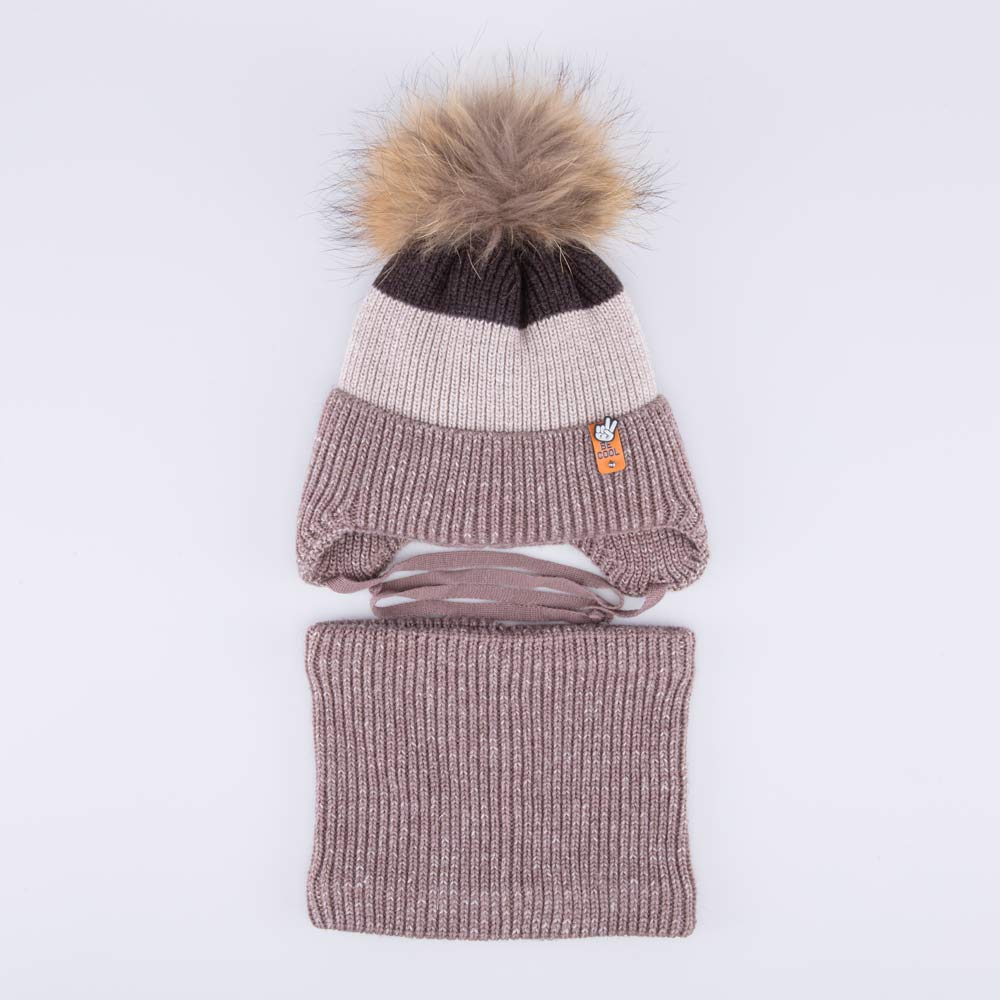 Детский комплект из шерстяной вязаной шапки и снуда отлично подходит для зимней прогулки.