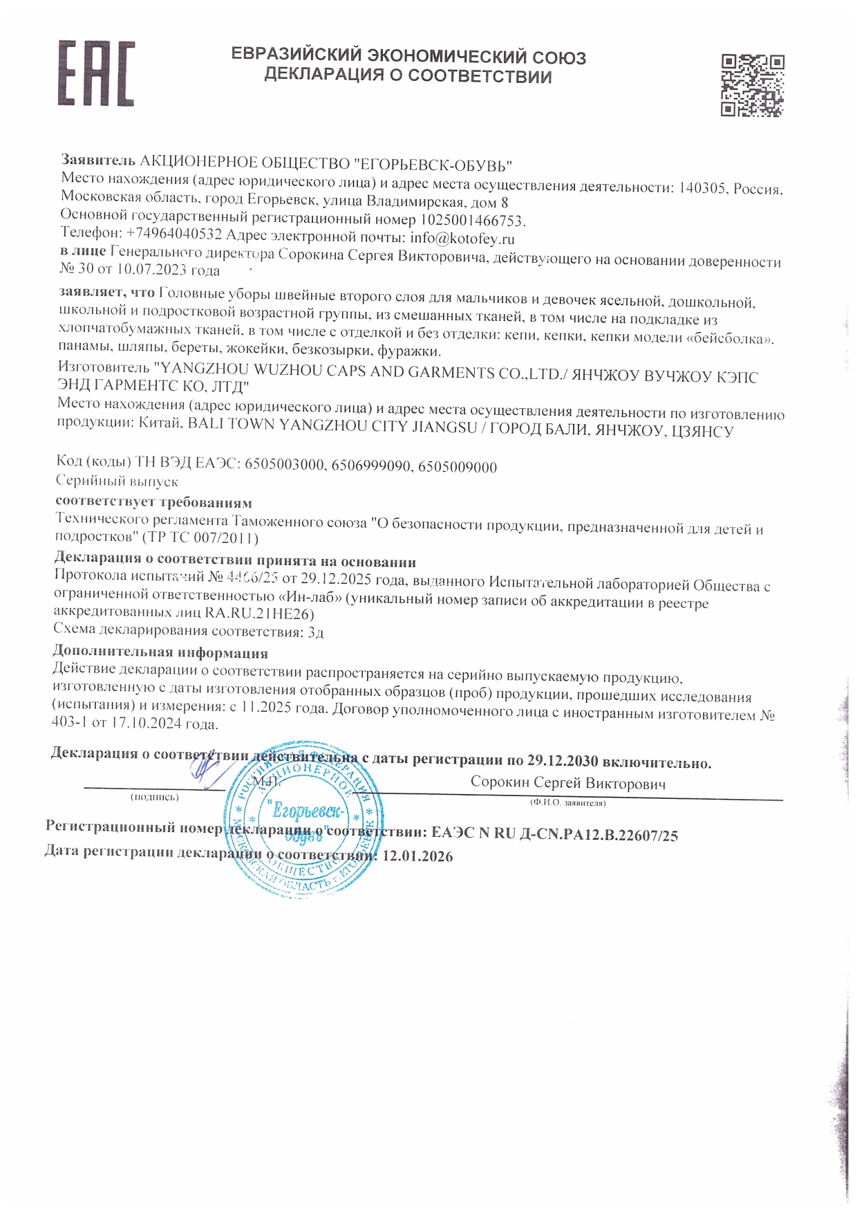 ЕАЭС N RU Д-CN.РА12.В.22607/25