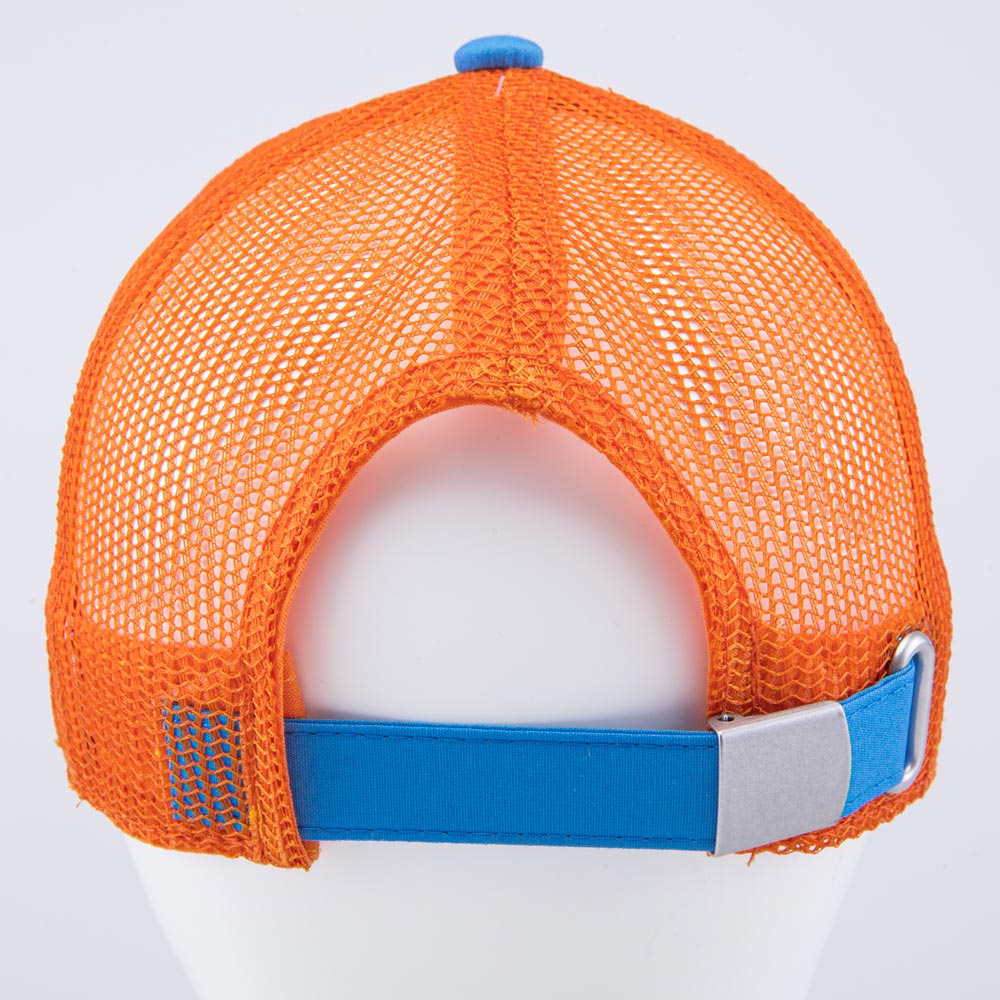 Регулируемый ремешок с металлической застежкой обеспечивает комфортную посадку бейсболки.