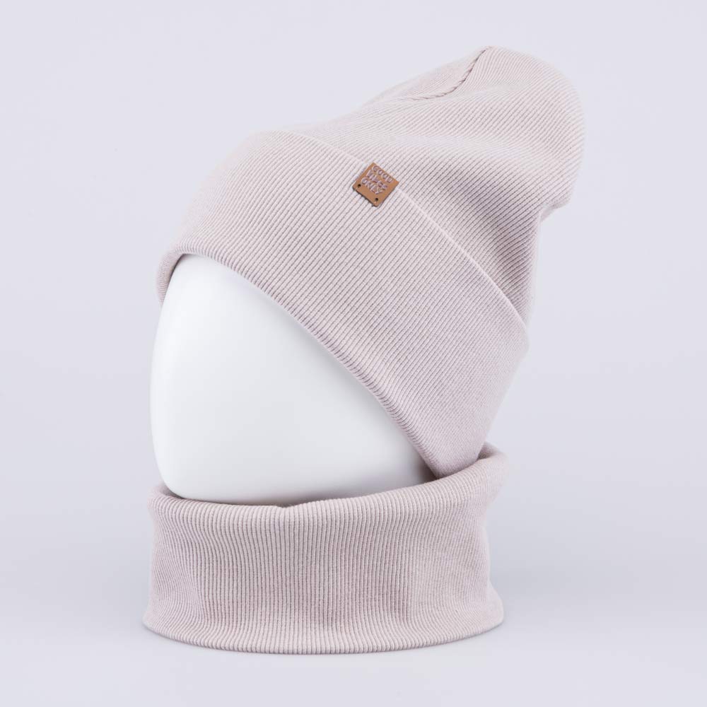 Детский демисезонный комплект в рубчик состоит из шапки без завязок и снуда, выполненных из двойного хлопкового полотна бежевого цвета. Они отлично подходят для повседневной носки в детский сад или школу, а также для прогулок на свежем воздухе весной и осенью.