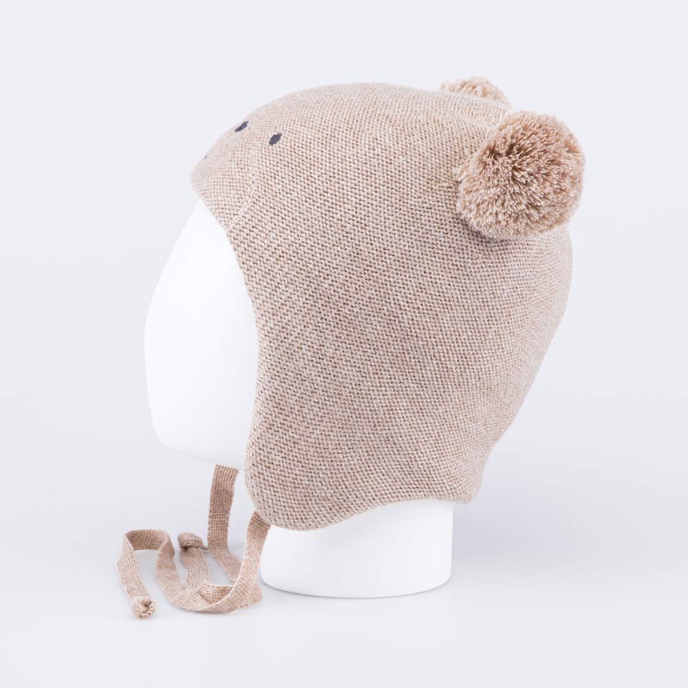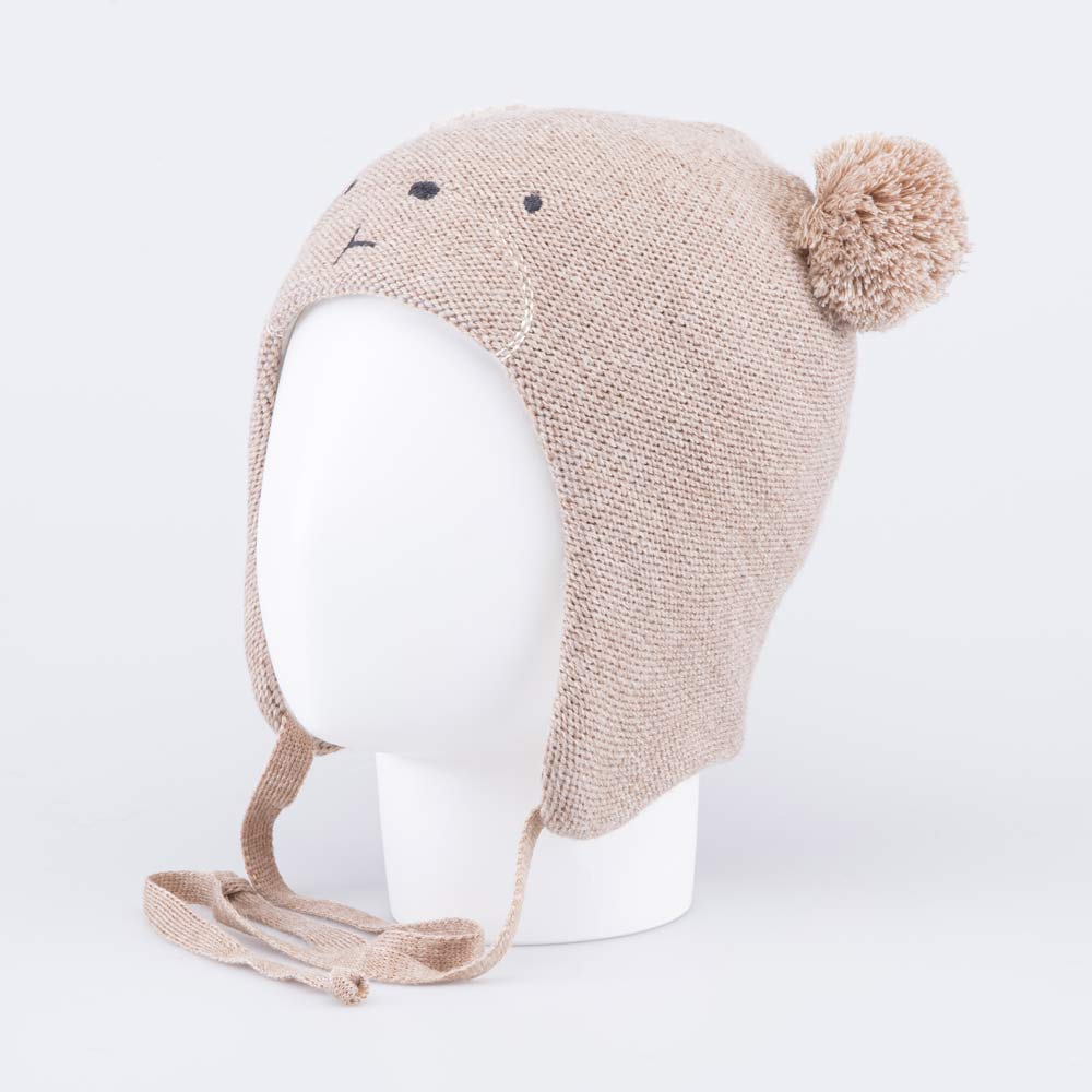 Вязаная шерстяная шапка с подкладкой из хлопка сохраняет голову в комфорте даже при длительной носке. Плоские завязки не натирают нежную кожу ребенка.