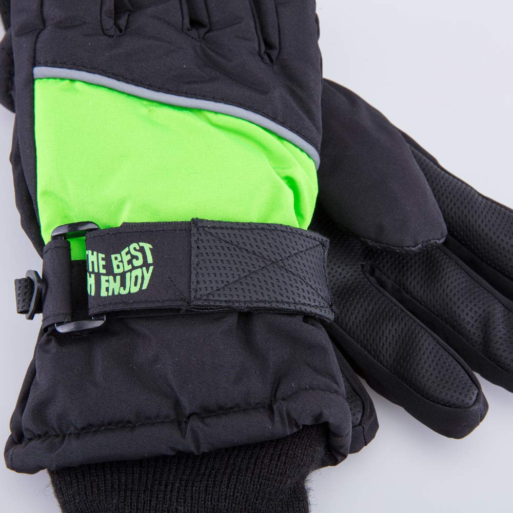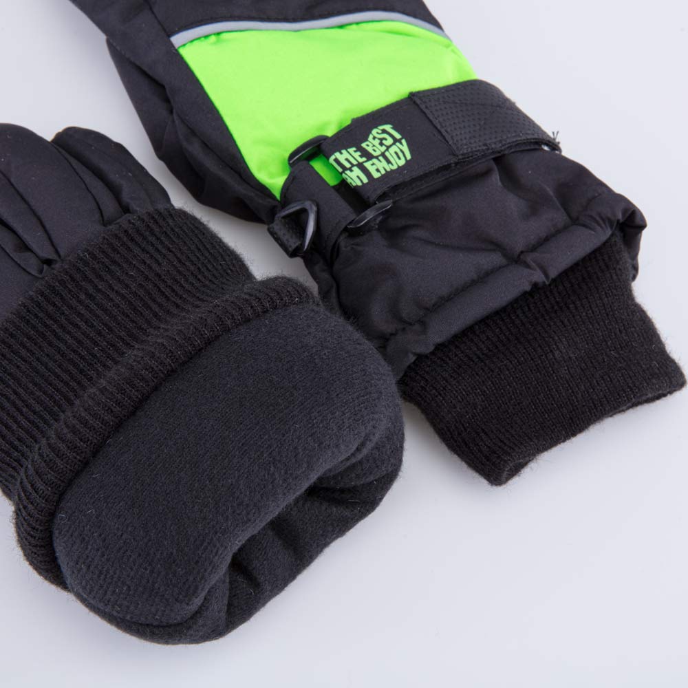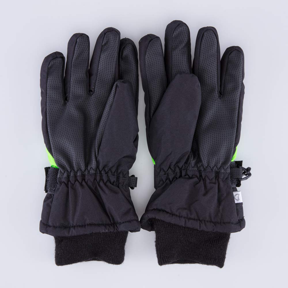 Черные зимние перчатки с яркими деталями надежно защищают руки от холода и снега и подходят для детей и подростков от 2 до 16 лет.