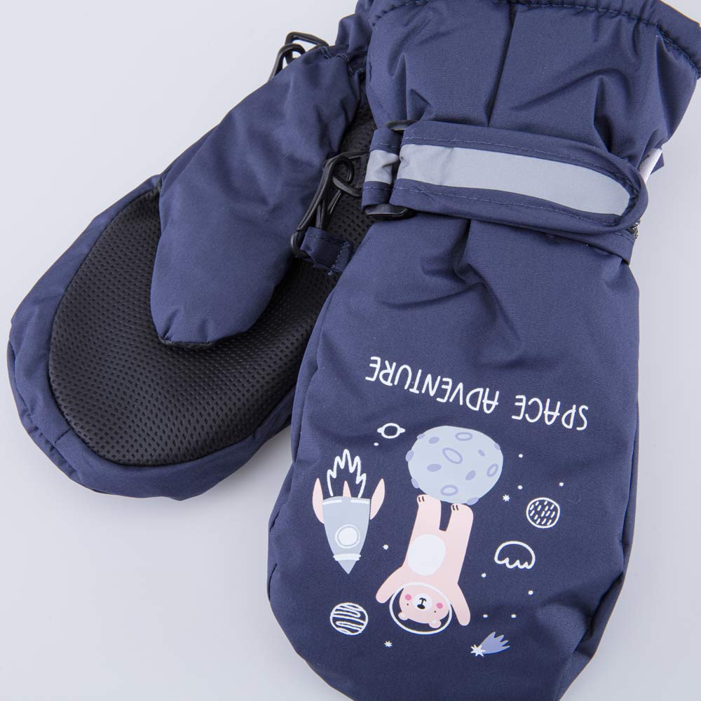 Теплые зимние варежки с принтом в виде медвежонка-космонавта надежно защищают руки от холода и снега и подходят для детей от 1 года до 6 лет.