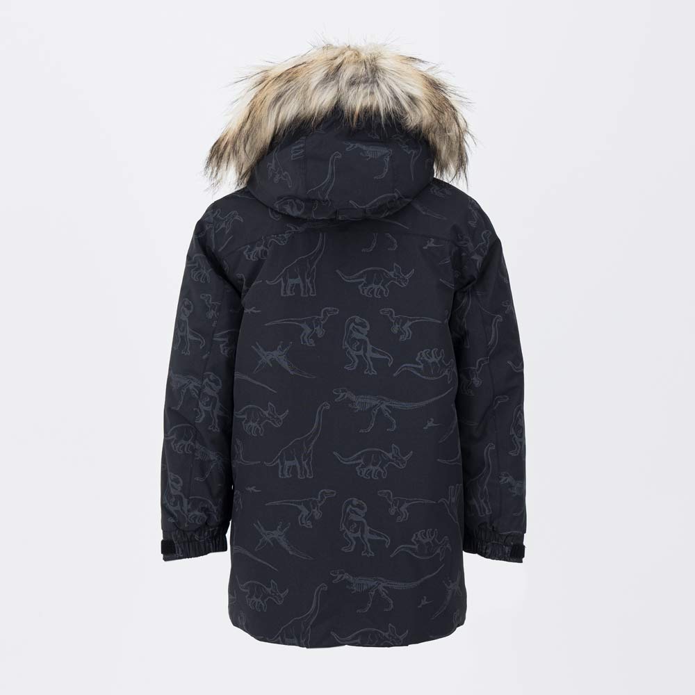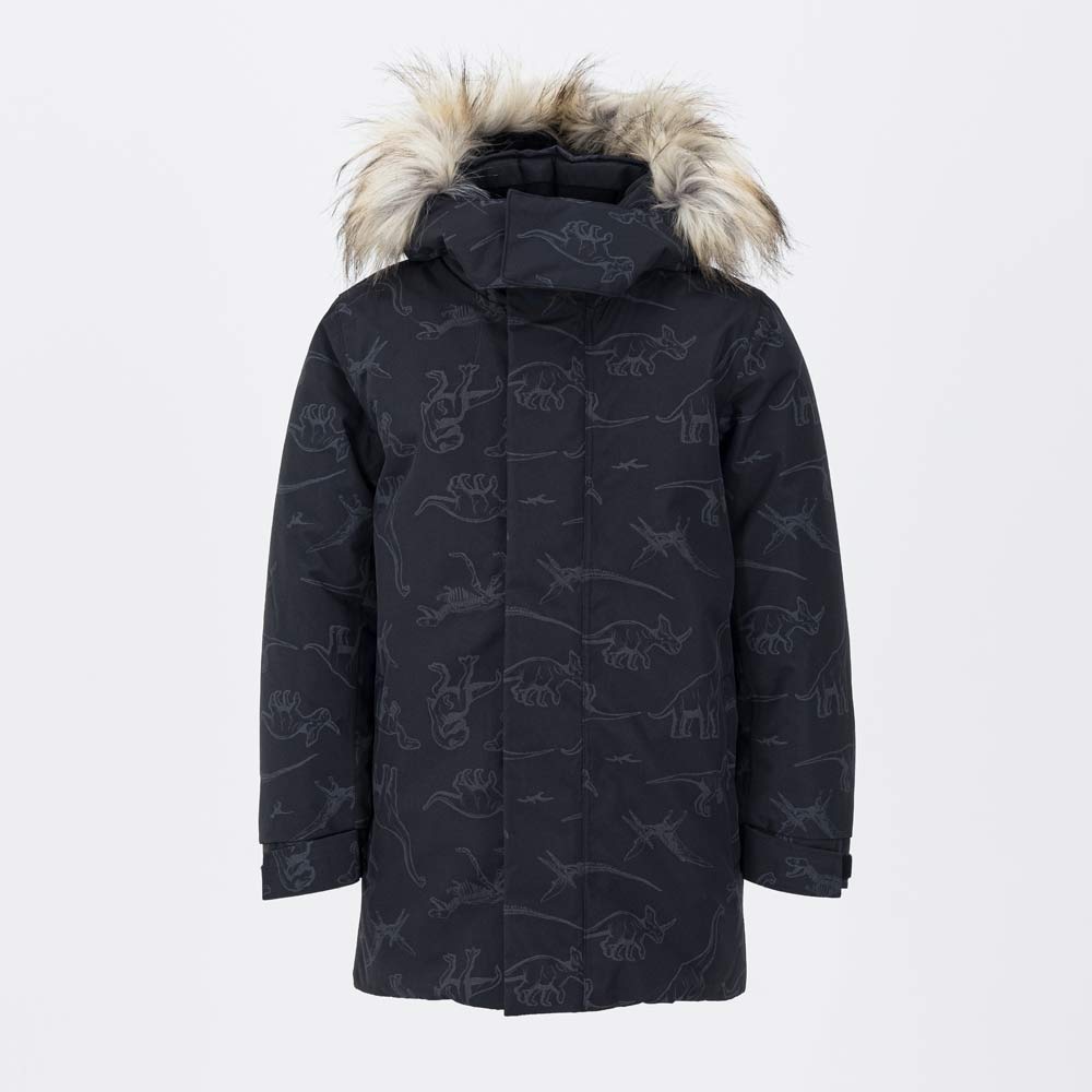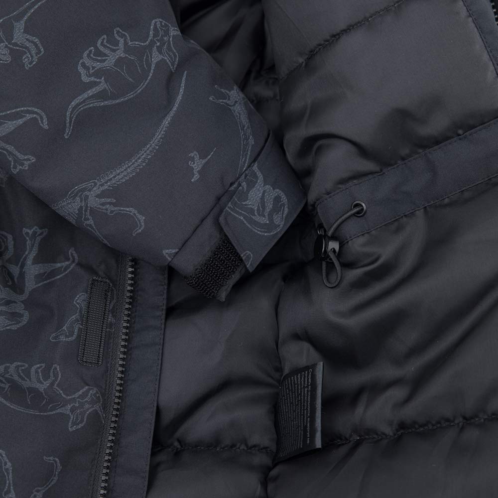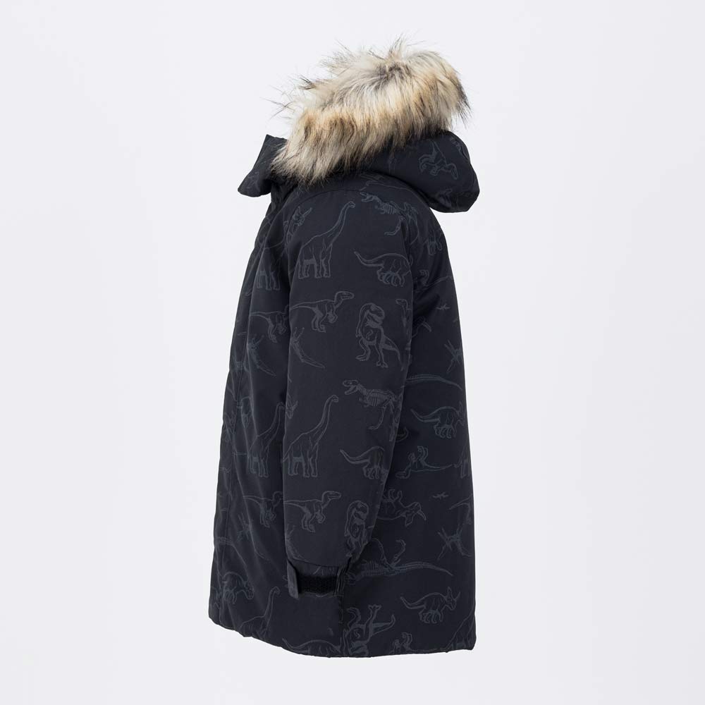 Детская черная мембранная куртка-парка на зиму оснащена светоотражающим принтом. Удлиненная модель с капюшоном обеспечивает максимальный комфорт для детей.