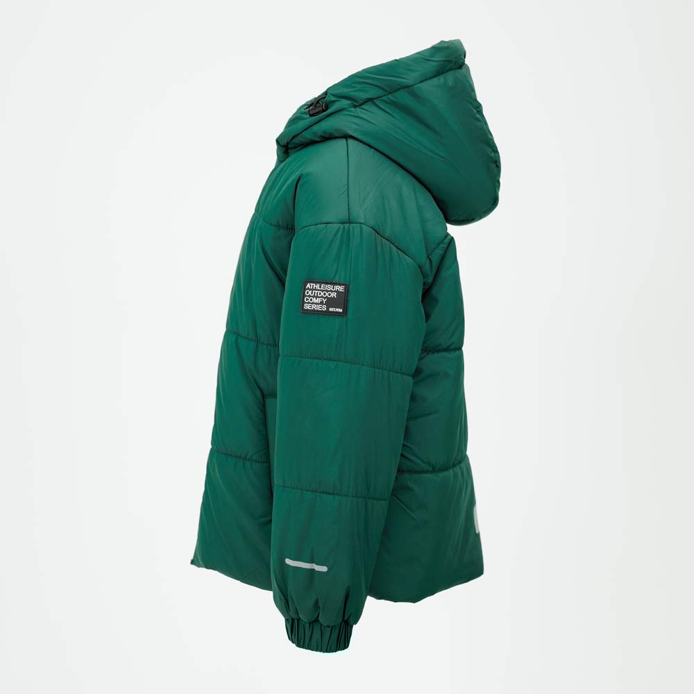 Объемная дутая куртка с капюшоном подходит для повседневной носки. Эта стильная темно-зеленая куртка изготовлена из легкого в уходе и непродуваемого текстиля.
