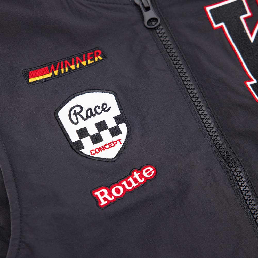 Утепленная демисезонная жилетка для мальчика отлично подходит для носки в холодную осеннюю и весеннюю погоду. Модная черная модель украшена декоративными патчами, которые выполнены в технике вышивки.