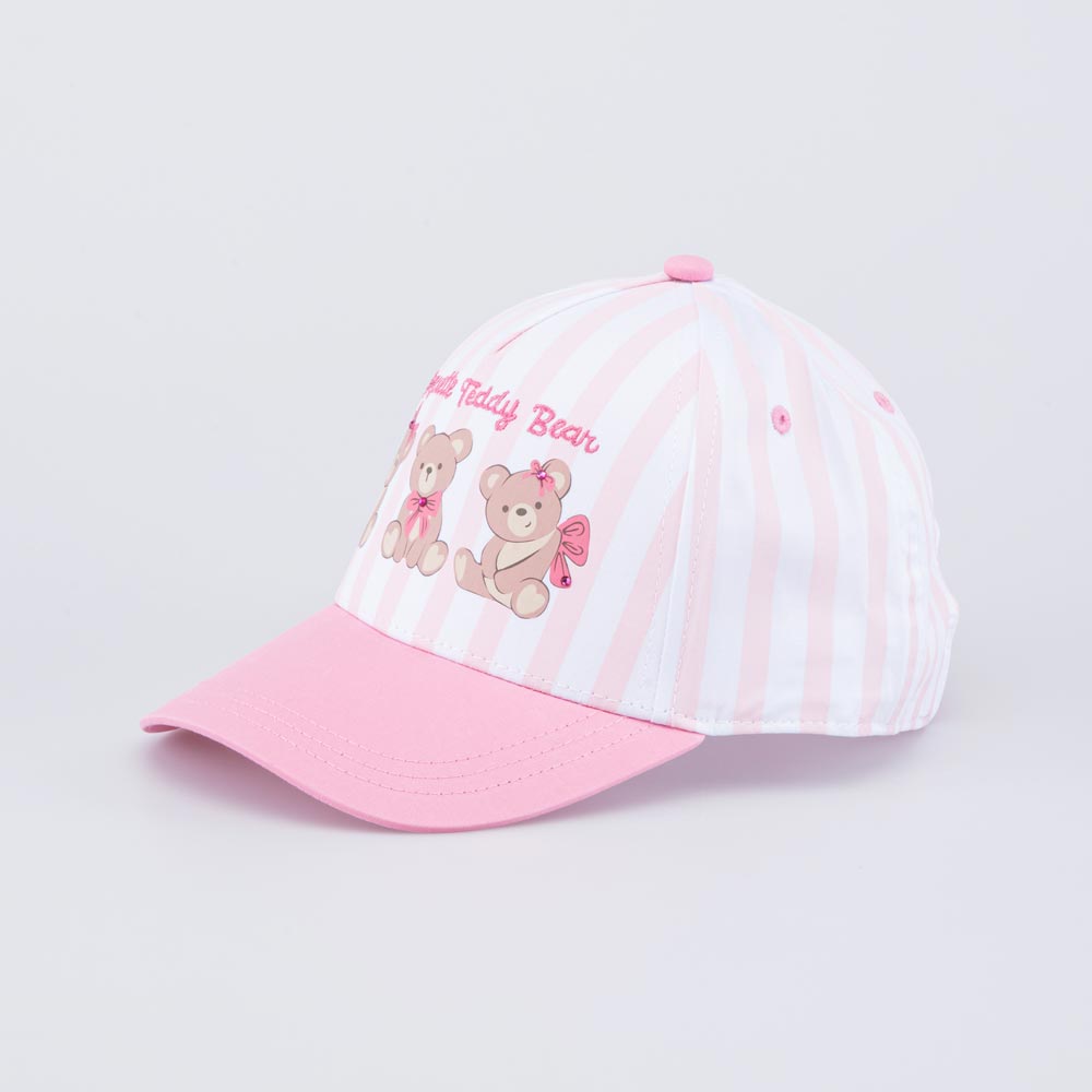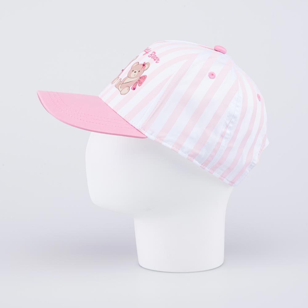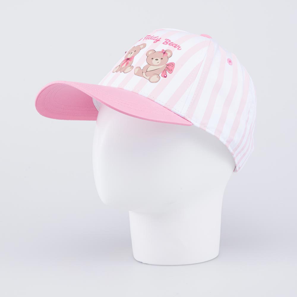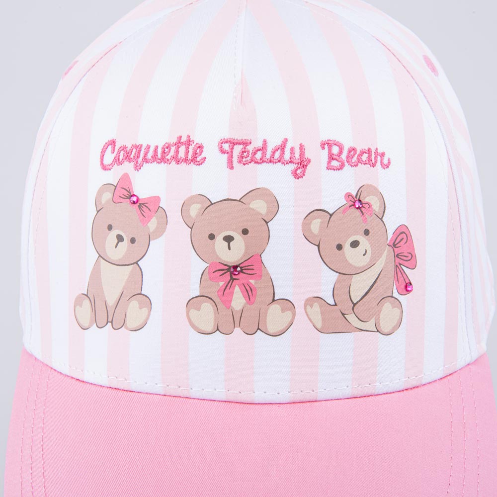 Летняя бейсболка для девочки украшена стразами и принтом в виде медвежат. Детская кепка с козырьком защищает голову от солнца и ветра и является незаменимым головным убором на весну, лето и осень, а также в садик.