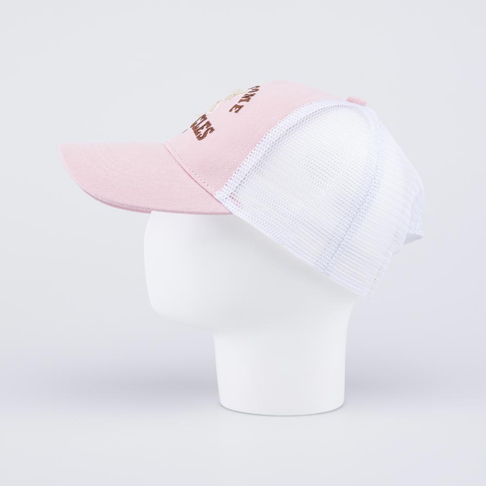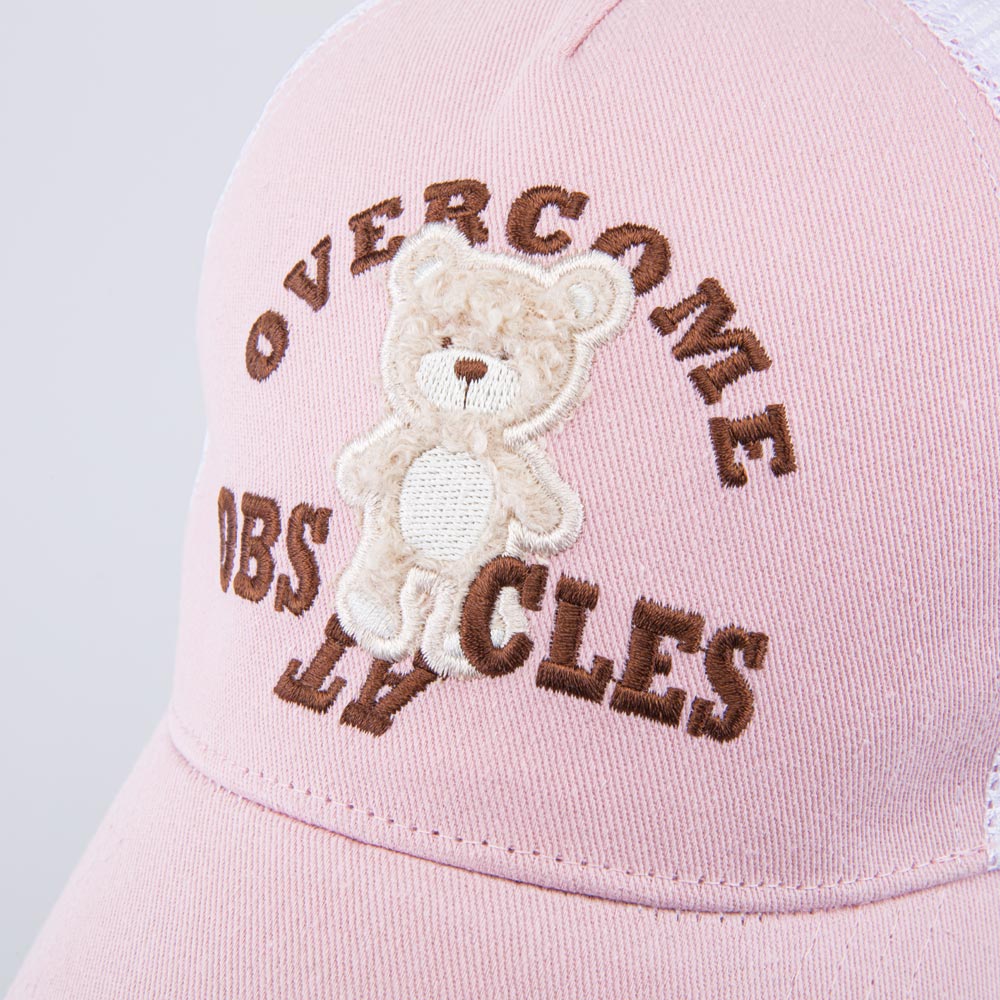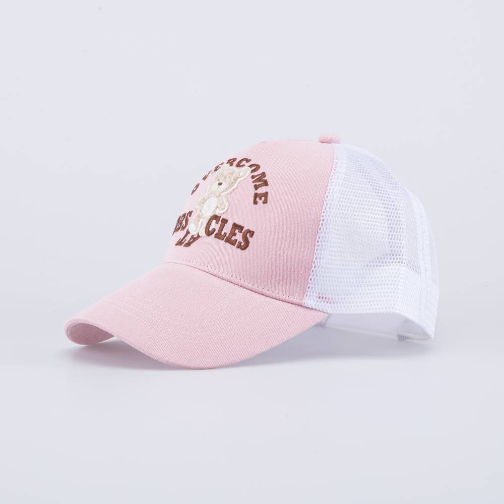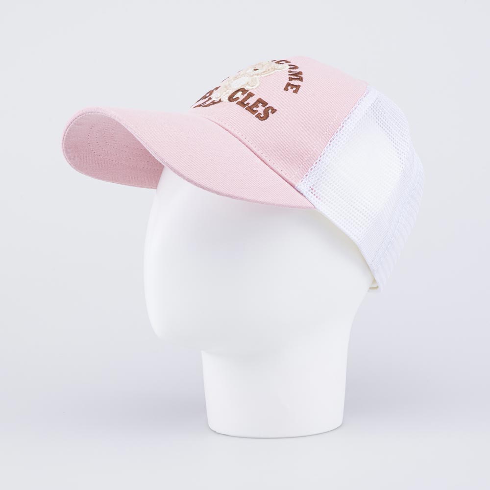 Летняя розовая с белым бейсболка для девочки украшена вышивкой и тактильной нашивкой в виде медвежонка. Детская кепка с козырьком защищает голову от солнца и ветра и является незаменимым головным убором на весну, лето и осень, а также в садик.