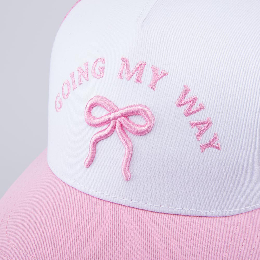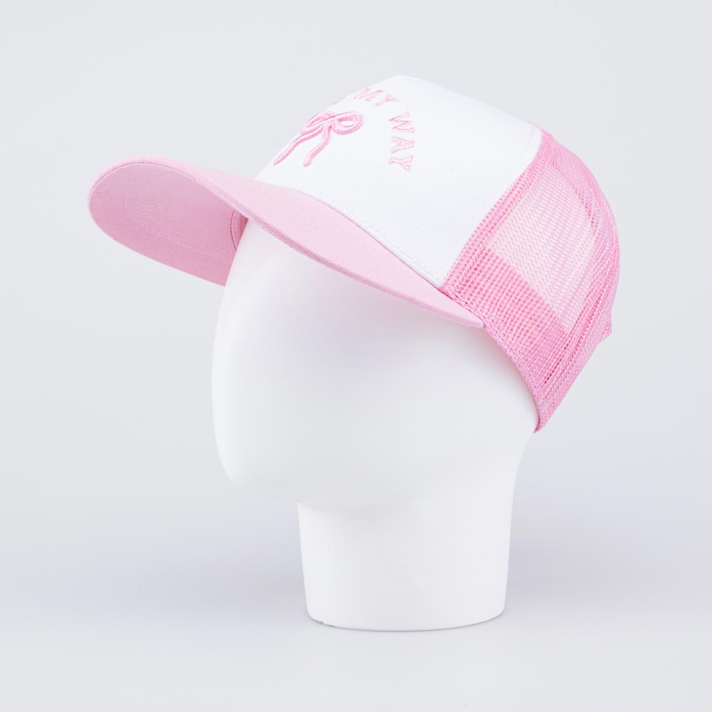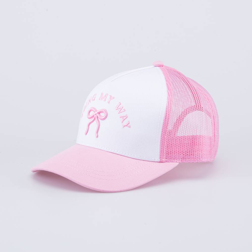 Летняя розовая с белым бейсболка для девочки украшена объемной вышивкой в виде бантика и надписи. Детская кепка с козырьком защищает голову от солнца и ветра и является незаменимым головным убором на весну, лето и осень, а также в садик.