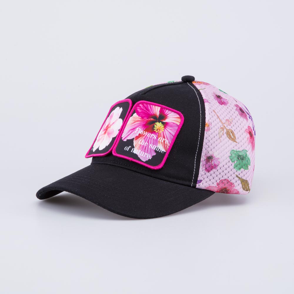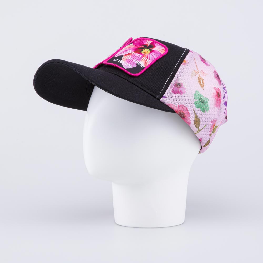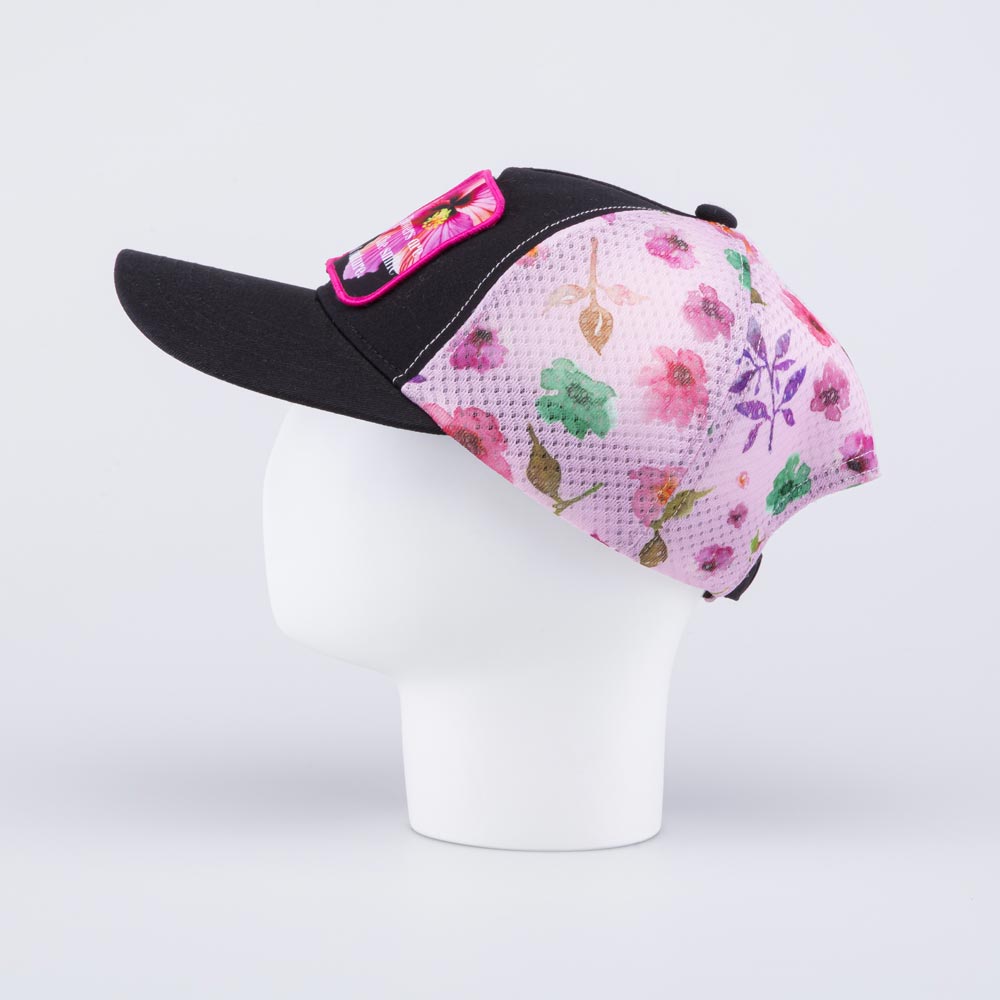 Модель выполнена из гипоаллергенного и дышащего натурального хлопка, который обладает высокой воздухопроницаемостью и хорошо впитывает влагу. Сетчатая вставка, украшенная принтом, не только подчеркивает цветочный мотив, но и обеспечивает дополнительную вентиляцию, сохраняя голову сухой даже в жаркую погоду.