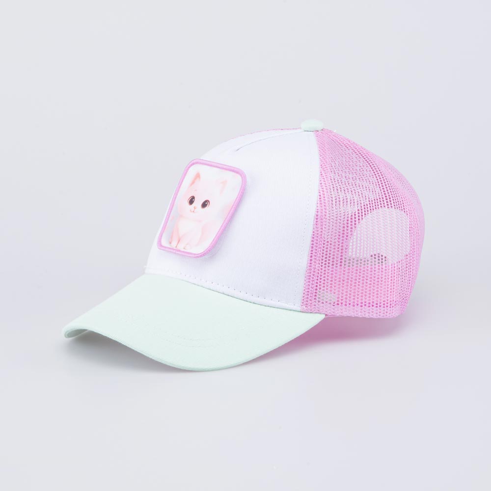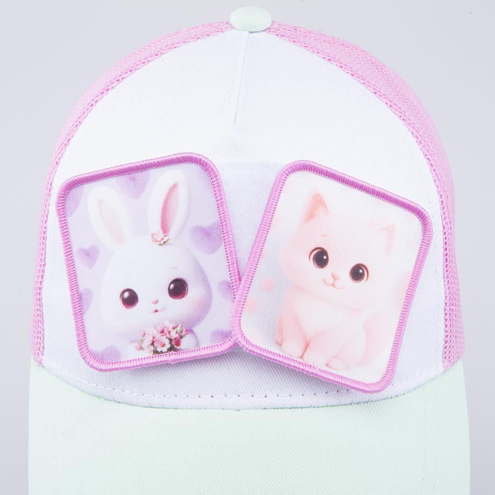 Яркая летняя бейсболка для девочки украшена сменными патчами с изображением милых животных (крепятся на липучку). Детская кепка с козырьком защищает голову от солнца и ветра и является незаменимым головным убором на весну, лето и осень, а также в садик.