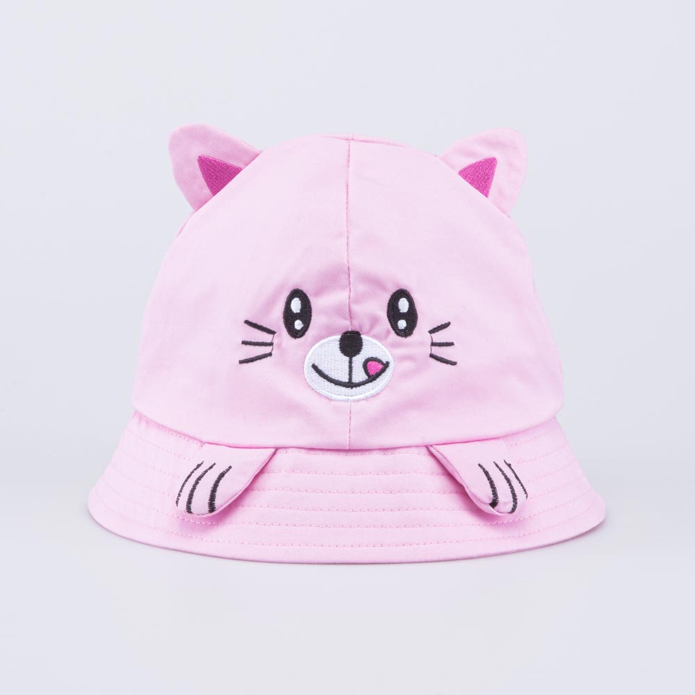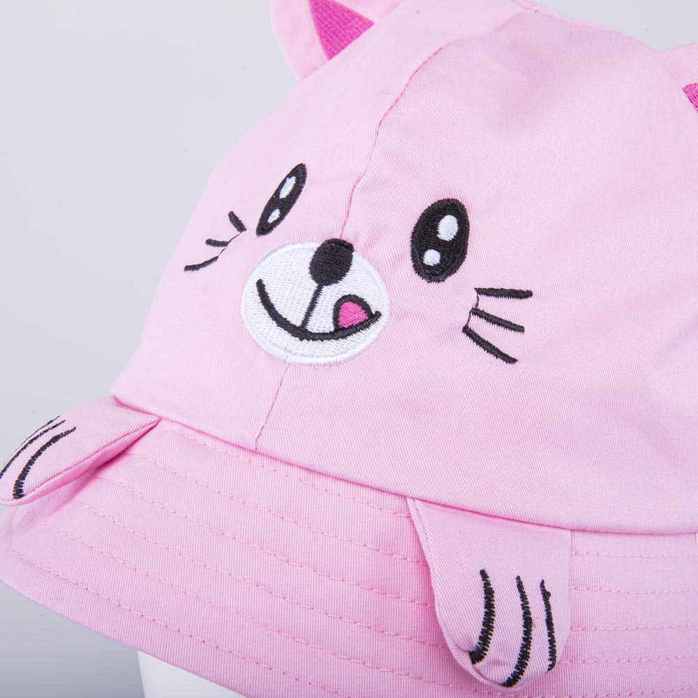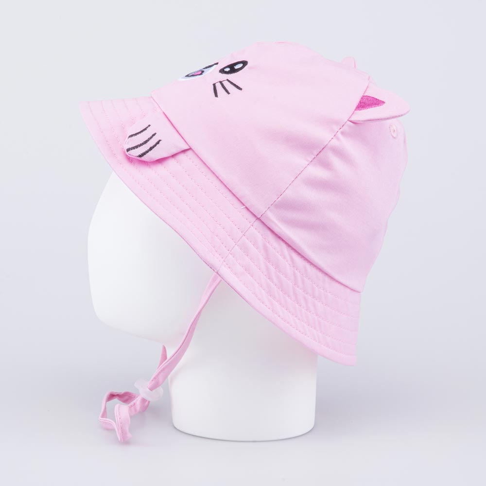 Детская летняя панама для девочки украшена принтом в виде мордочки котенка с милыми объемными ушками и лапками. Она защищает голову от солнца и ветра и является незаменимым головным убором в городе, на даче, на море, на пляже, а также в садике.