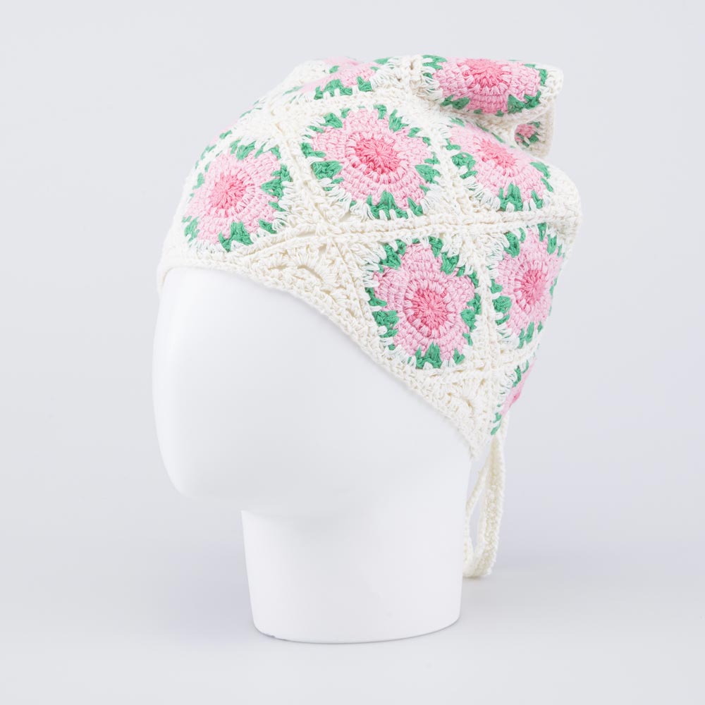 Детская вязаная косынка в цветочек для девочки, является милым и практичным головным убором, который защищает голову от солнца в городе, на даче, на море, на пляже, а также в садике.