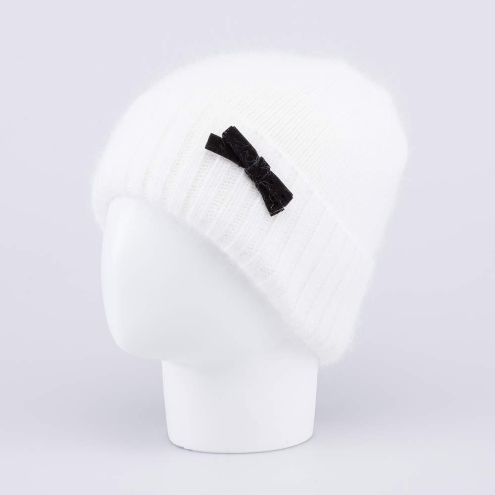 Шерстяная вязаная шапка светлого бежевого цвета без завязок комфортно облегает голову и подходит для зимней прогулки и активного отдыха.