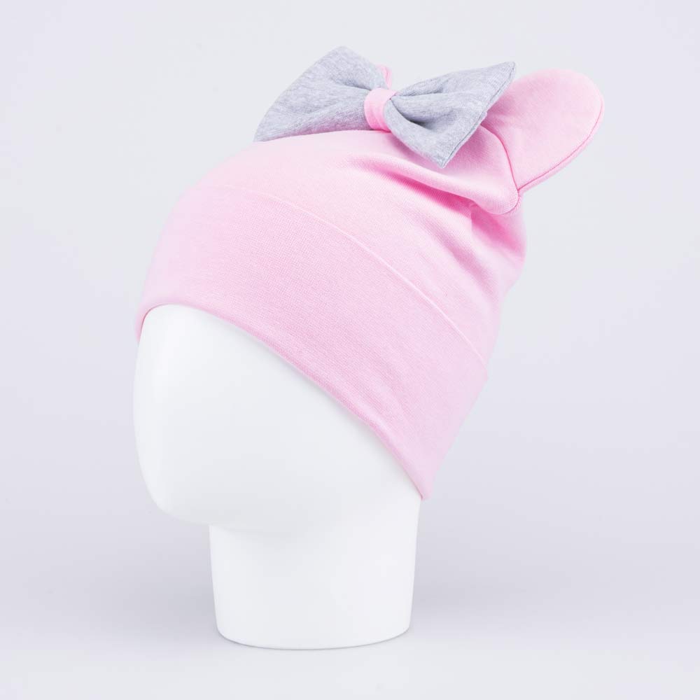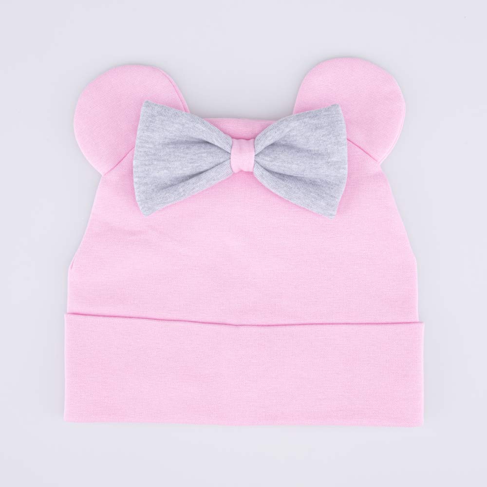 Шапка декорирована ушками микки и бантиком, хорошо сидит на голове и не сползает на глаза.