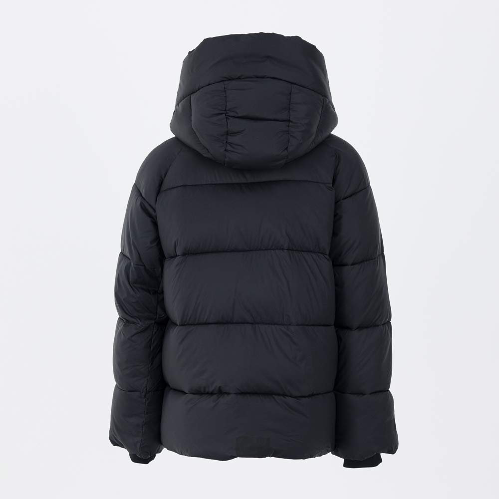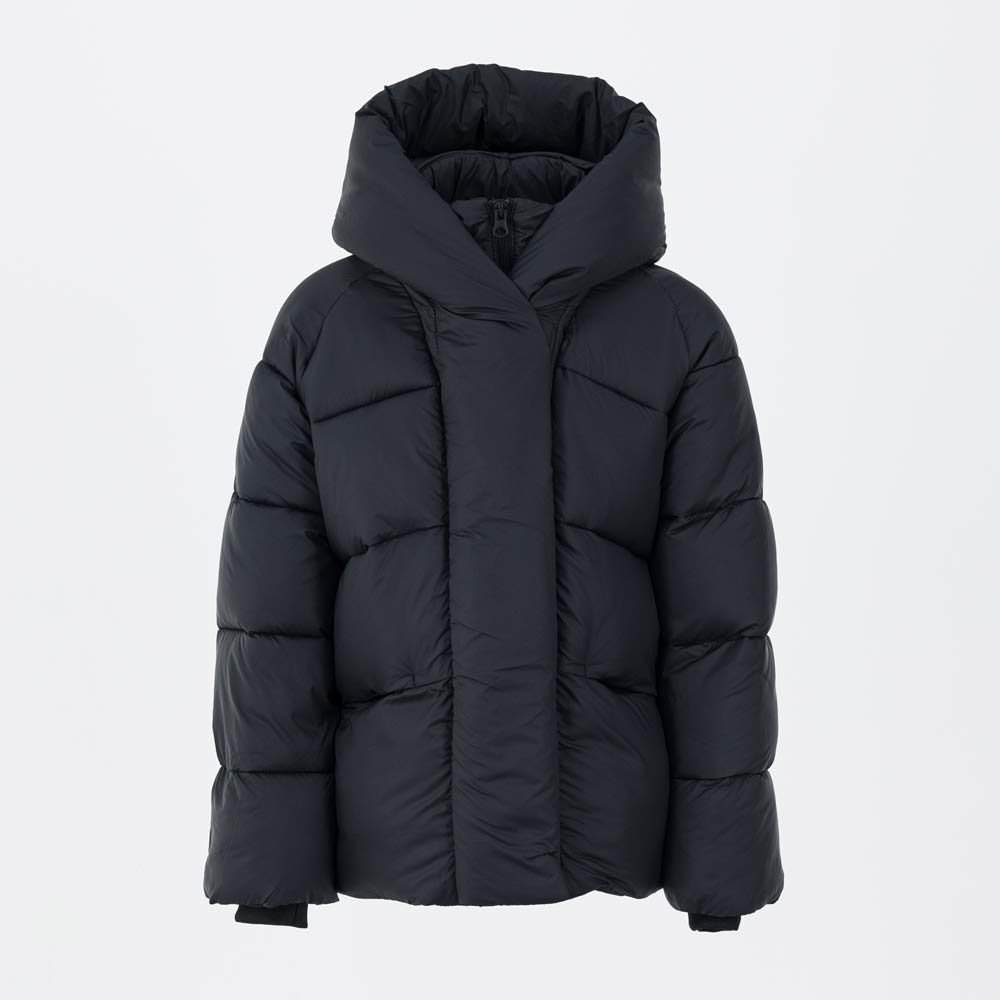 Дутая черная куртка с капюшоном отлично подходит на зиму для детей и подростков. Объемная форма обеспечивает свободу движений ребенка во время прогулок на свежем воздухе.