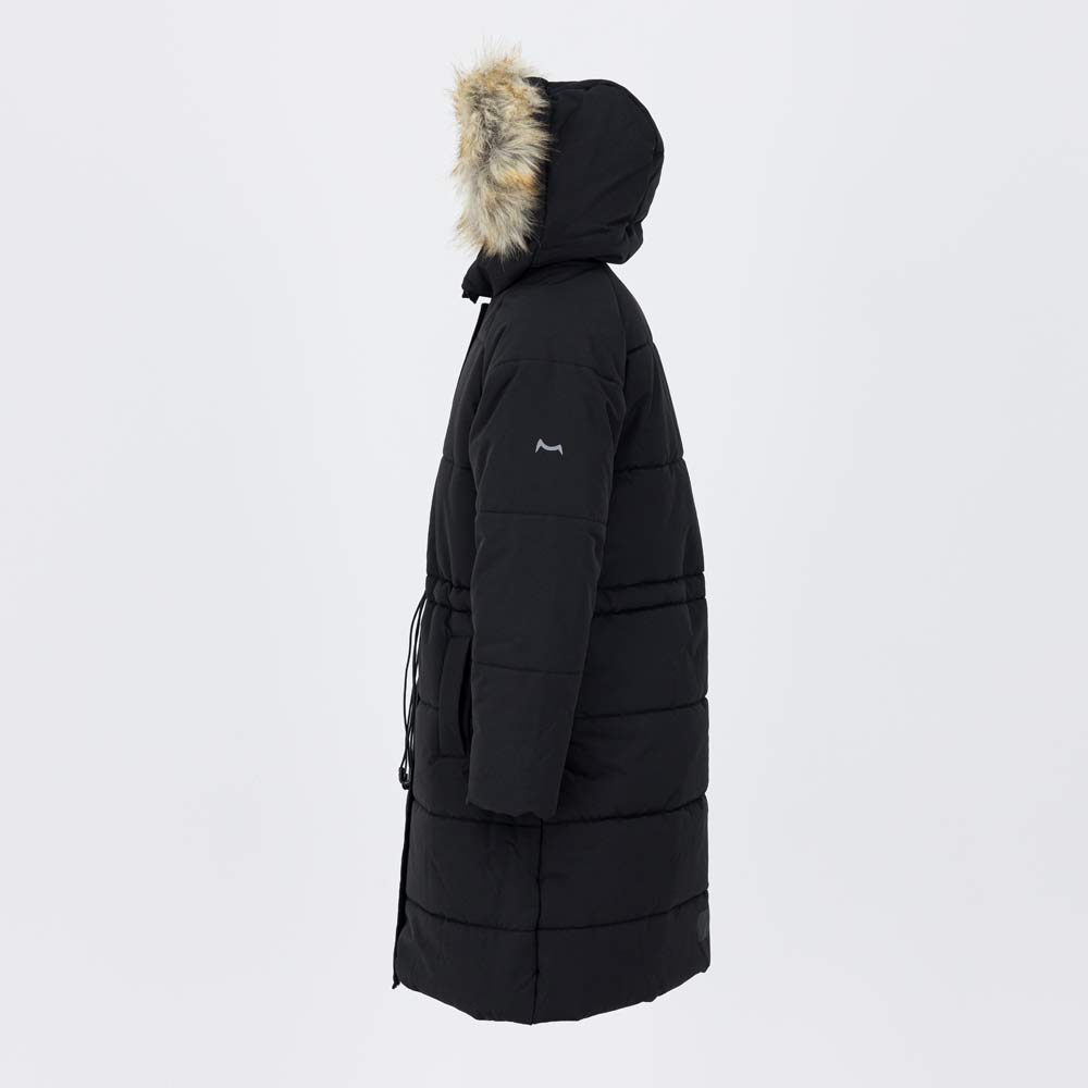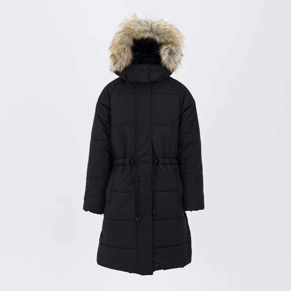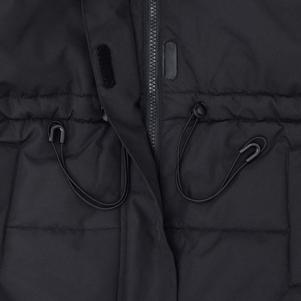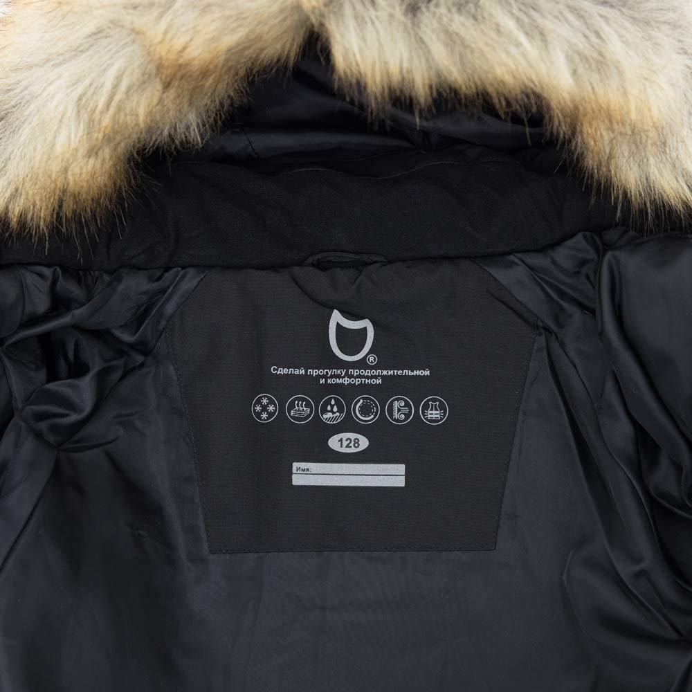 - несъемный капюшон со съемной опушкой защищает голову и лицо от ветра и снега;