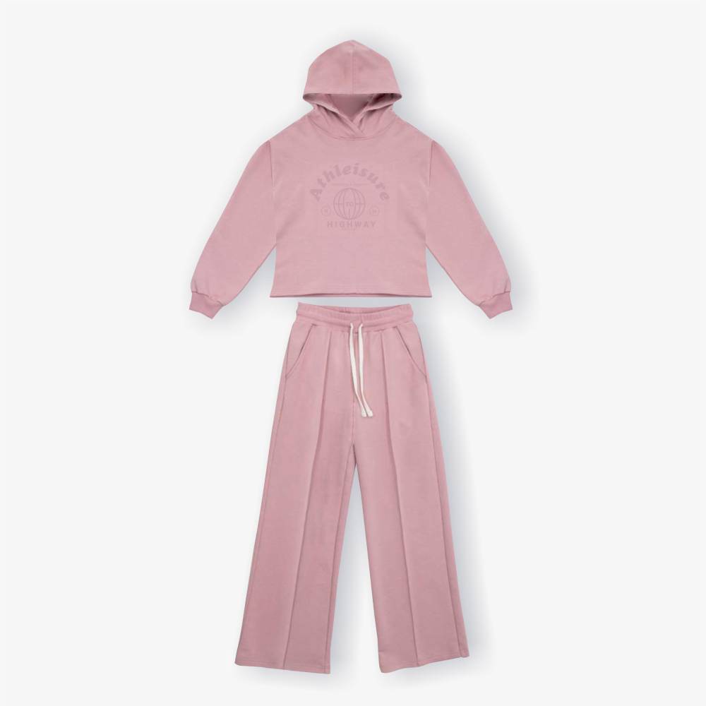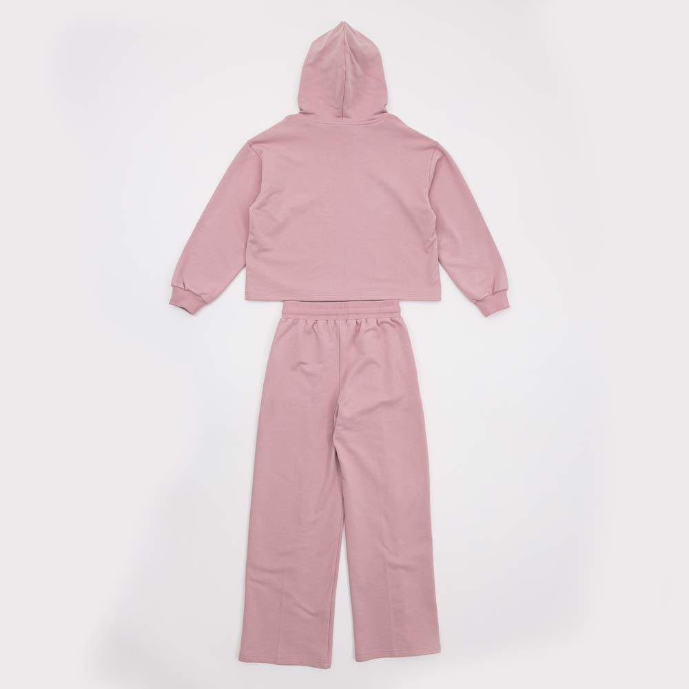 Костюм состоит из укороченного худи с капюшоном и брюк. Однотонная розовая модель для девочки подходит для ежедневной носки в любое время года: весной, летом, осенью и зимой. Ее комфортно использовать для прогулок, для кружка или секции, для активного отдыха, для детского сада и для физкультуры в школе.