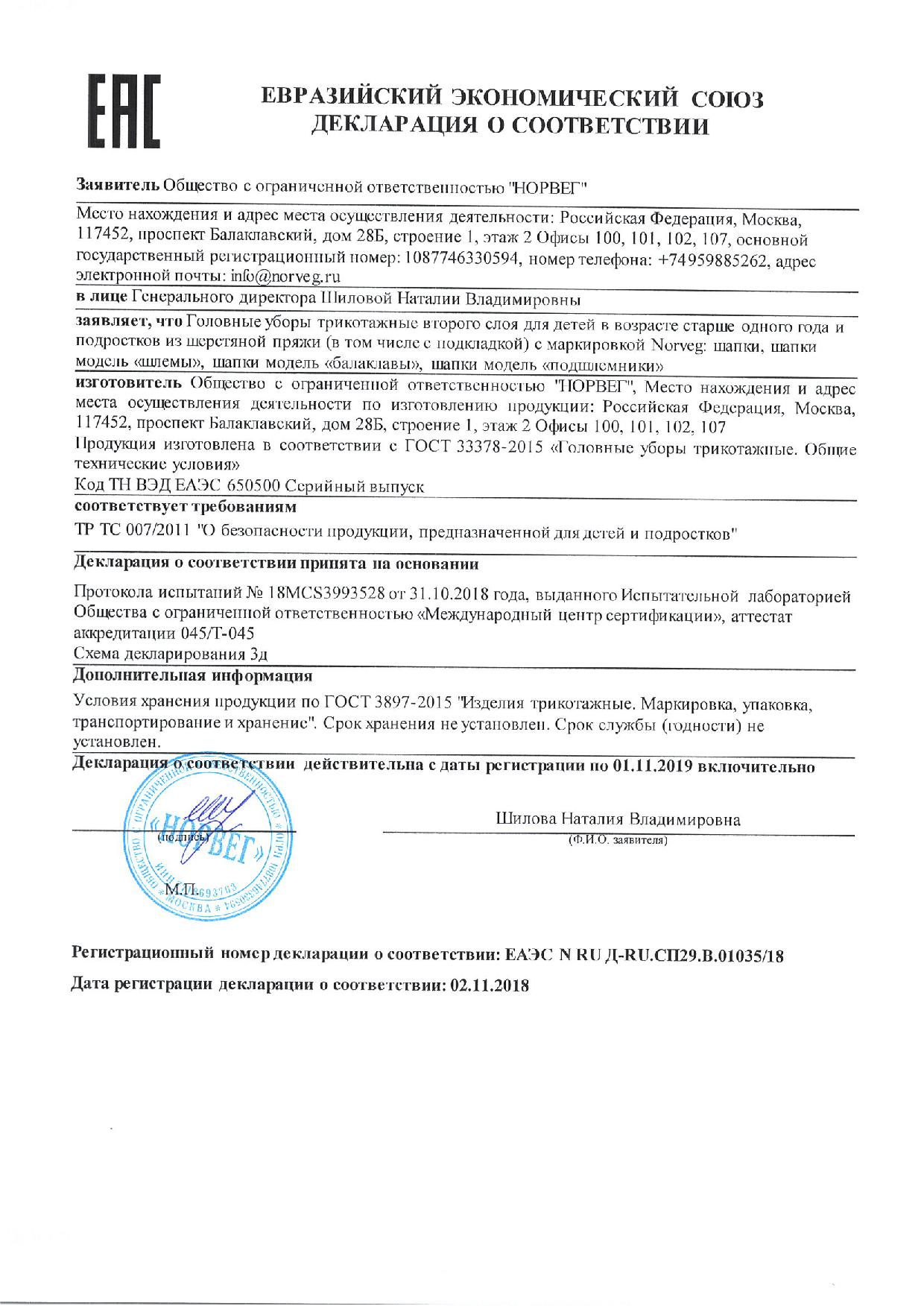 ЕАЭС N RU Д-RU.СП29.B.01035/18