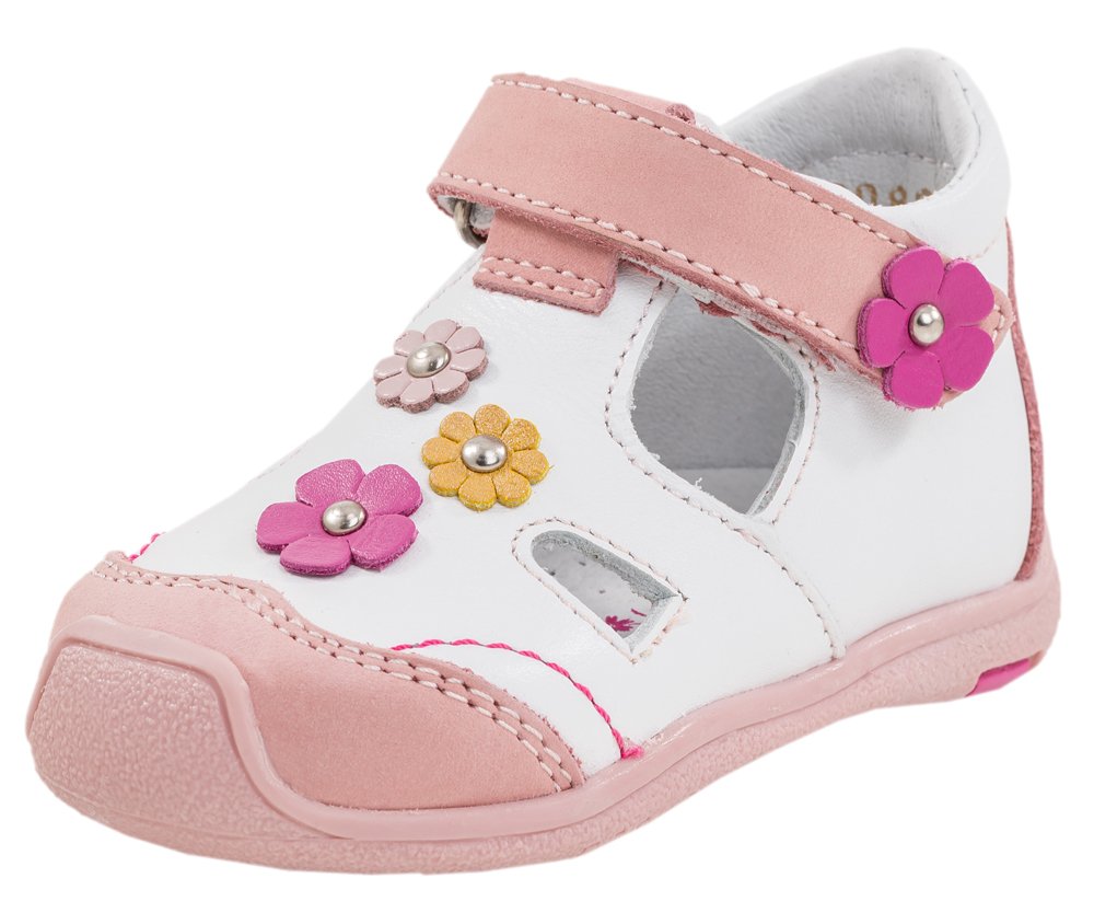 Легкие и удобные туфельки выполнены полностью из натуральной кожи. Кожаная подкладка абсорбирует образующуюся внутри обуви влагу и гарантирует полный комфорт. Подошва с небольшим заходом на носочную часть увеличит долговечность туфелек и они надолго сохранят приятный внешний вид. Сквозные отверстия на верхе увеличивают воздухопроницаемость модели, что позволяет сохранить благоприятный микроклимат внутри обуви. Нежная расцветка модели дополнена контрастными цветами.