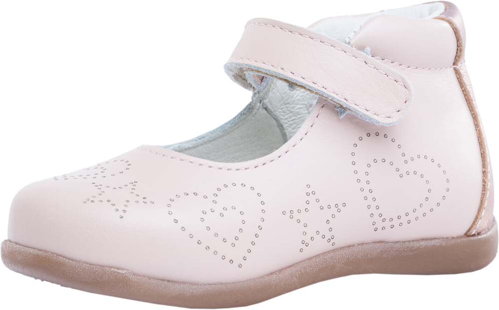 Туфли выполнены полностью из натуральной кожи, стелька из натуральной кожи, дублированная мягким вспененным материалом, обладает свойствами гигроскопичности и воздухопроницаемости. Подошва из Тэпа легкая и эластичная. Ремень с застежкой велькро позволяет легко обувать и снимать обувь. Мягкий манжет создает комфорт при ходьбе и предотвращает натирание ножки ребенка. Модель декорирована контрастным принтом. Нежно-розовые туфельки отлично подойдут как для торжественных мероприятий, так и для ежедневной носки.