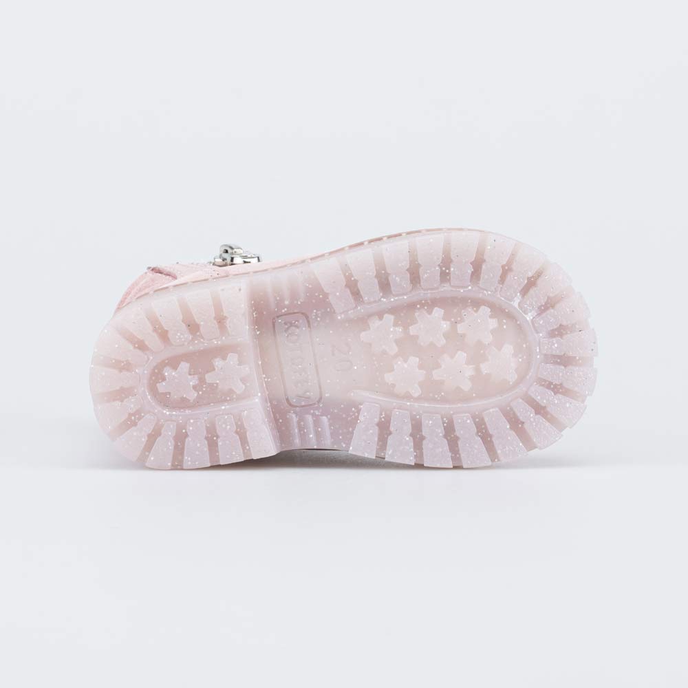 Обувь предназначена для детей младшего возраста, поэтому особое внимание уделено правильной конструкции: модель имеет пятку необходимой жесткости, небольшой каблучок, круглый закрытый носок, безопасные застежки.