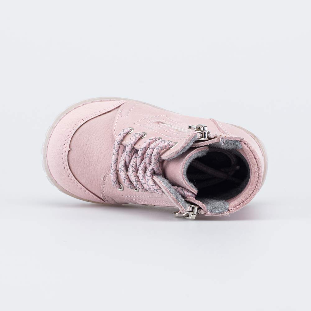 Кожаные ботинки с байковым утеплителем – классическая модель для девочки, которая только начинает ходить.