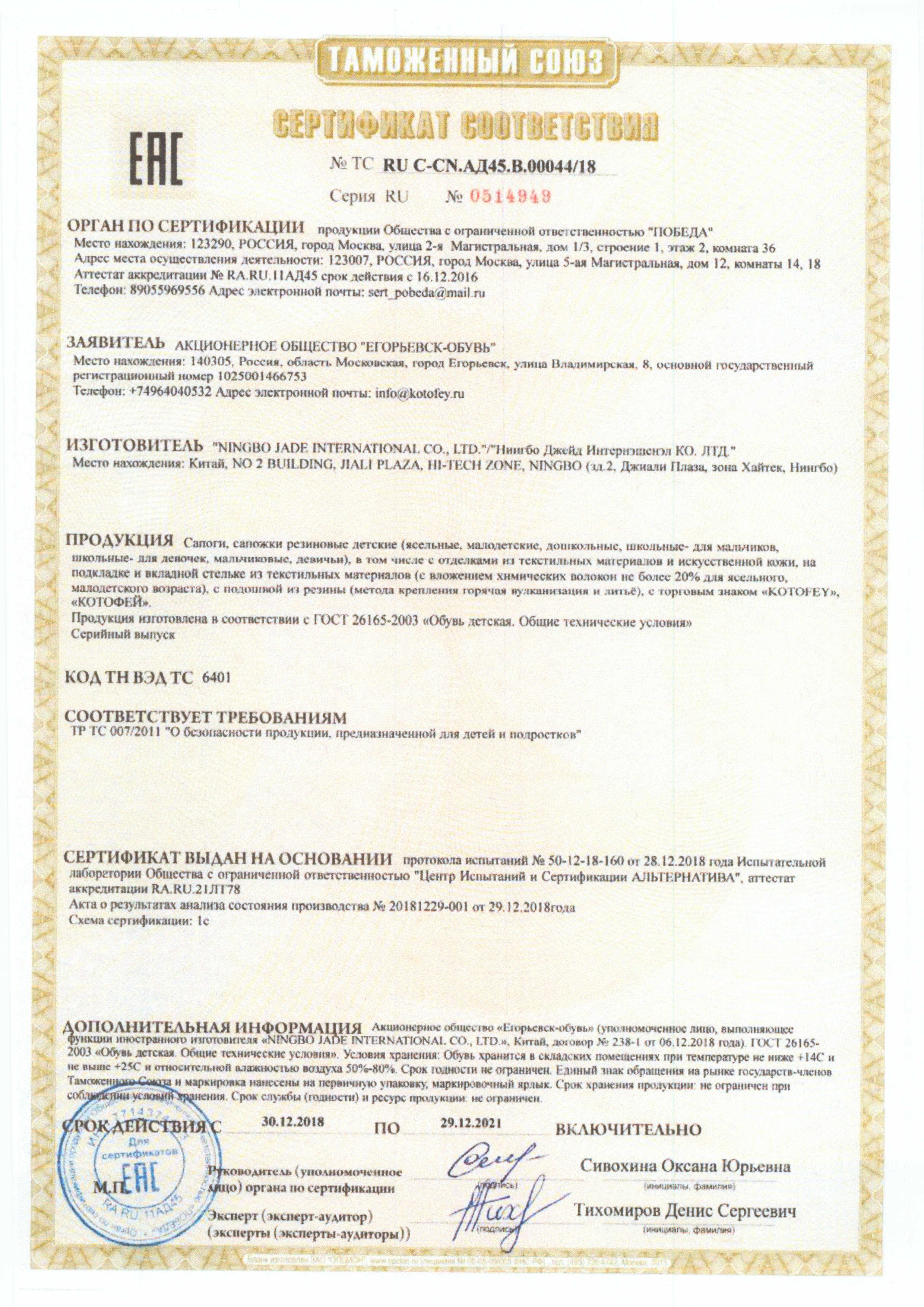 ТС RU С-CN.АД45.В.00044/18