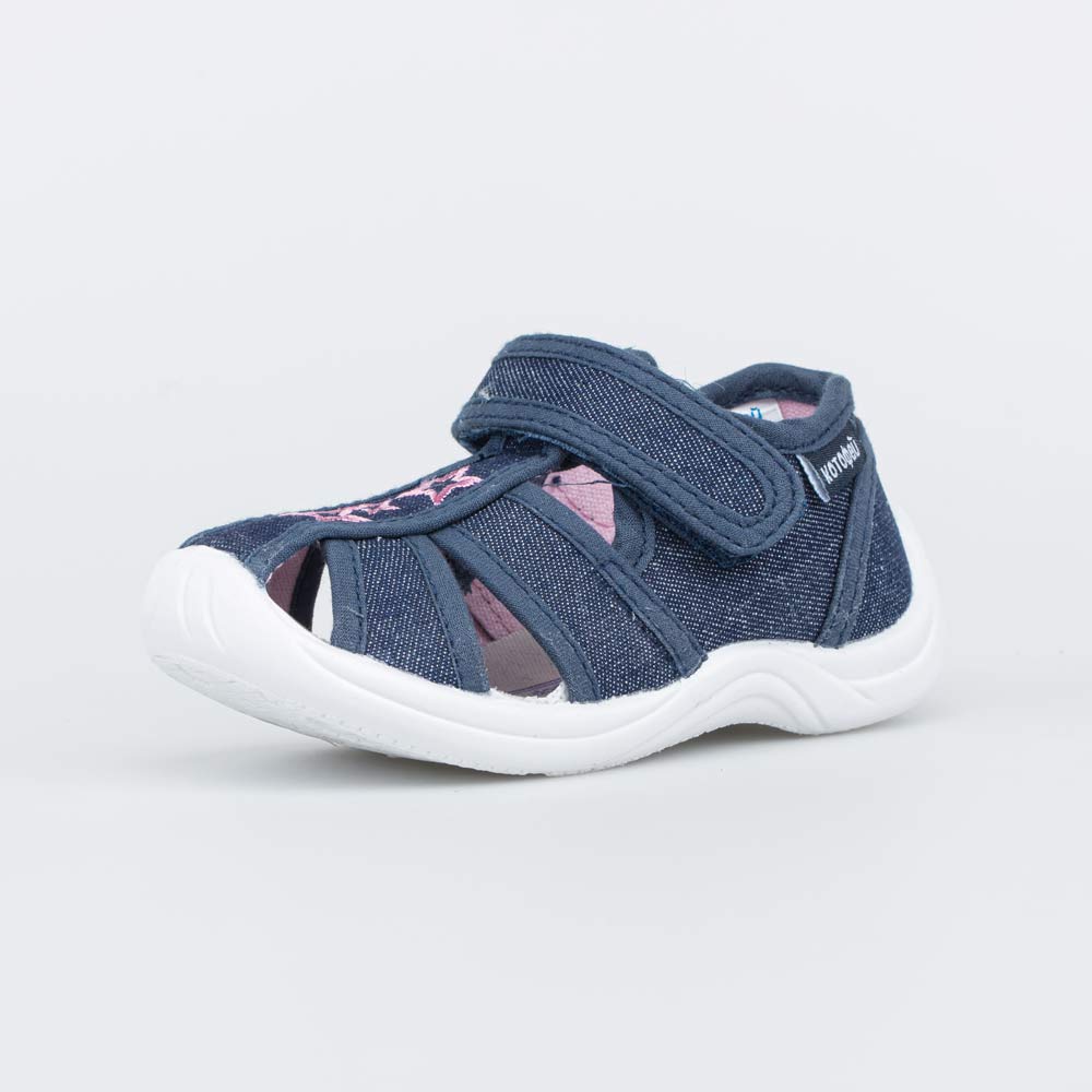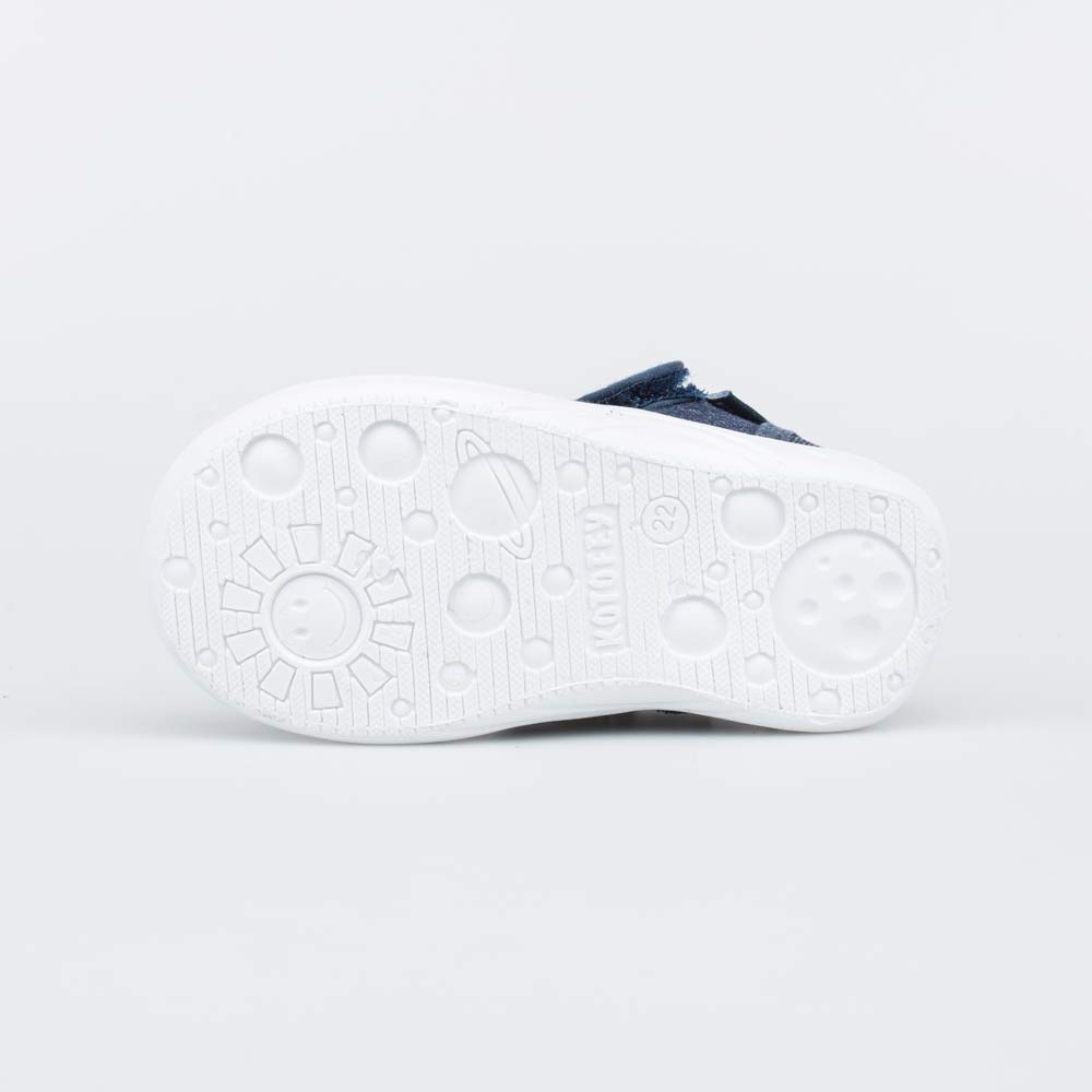 Обувь с текстильным верхом и хлопковой подкладкой. Подошва из поливинилхлорида (ПВХ, PVC) - прочного и лёгкого материала. Выполнена методом прямого прилива к верху обуви: анатомичная, повторяет контур стопы ребёнка. Формованная стелька содержит влагопоглощающий материал на основе переработанного поролона, это позволяет ножкам чувствовать себя комфортно и отлично подходит для носки в помещениях. Крепление - удобное и надежное \'велькро\' (липучка). Очень популярны для детских учреждений, занятий в группах и дома. Такая обувь непременно подойдёт юному непоседе.