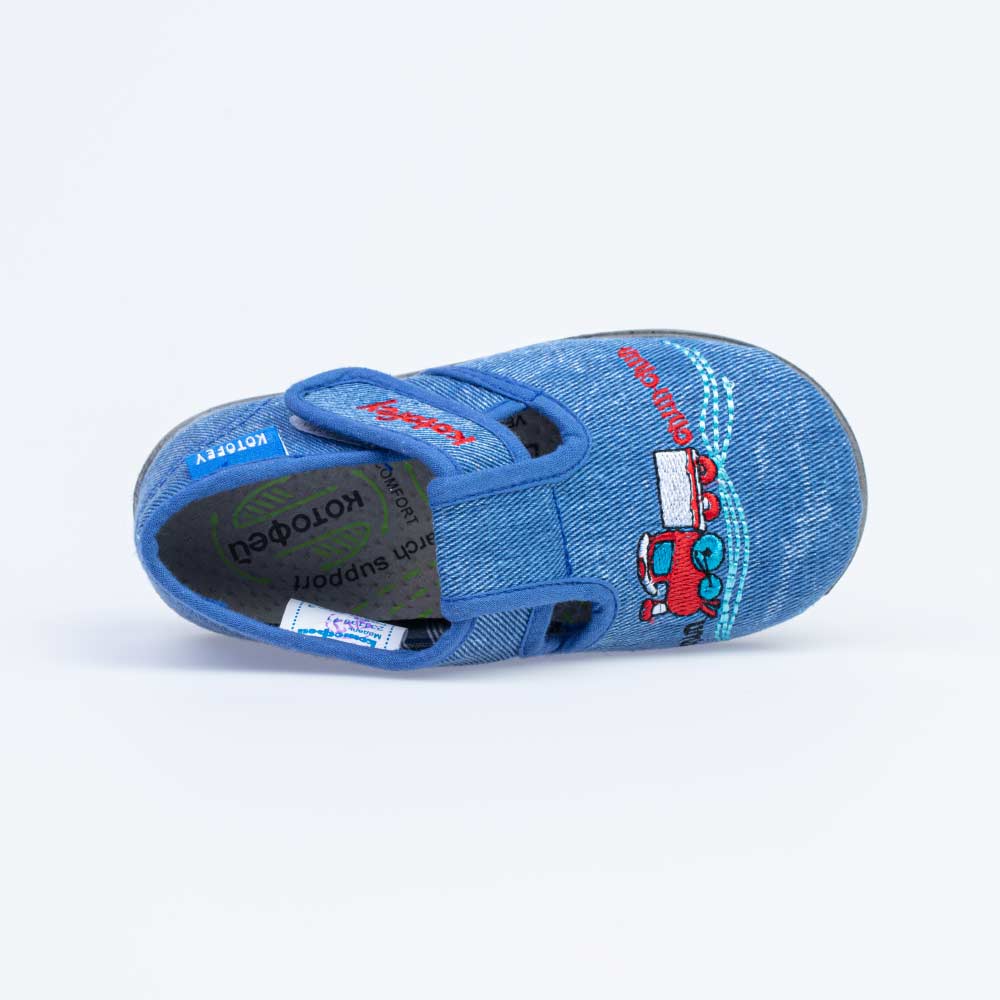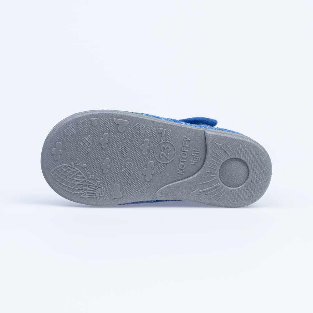 Обувь с текстильным верхом и хлопковой подкладкой. Подошва ЭВА (этиленвинилацетат) - легкая и упругая, обладает прекрасными амортизирующими свойствами. Ремень с застежкой велькро позволяет легко обувать и снимать обувь, и надежно фиксируют ножку малыша. Очень популярны для детских учреждений, занятий в группах и дома.