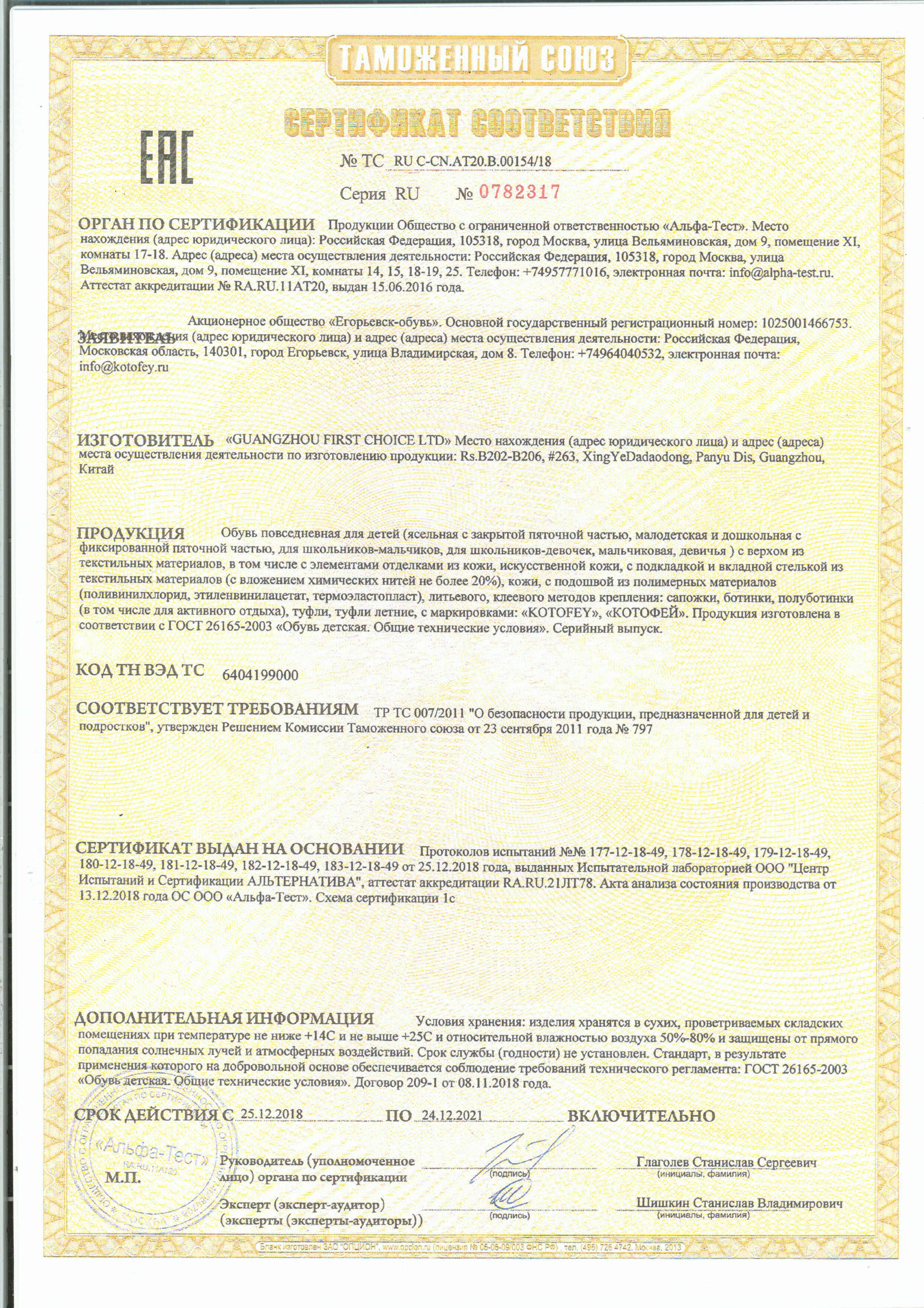 ТС RU С-CN.АТ20.В.00154/18