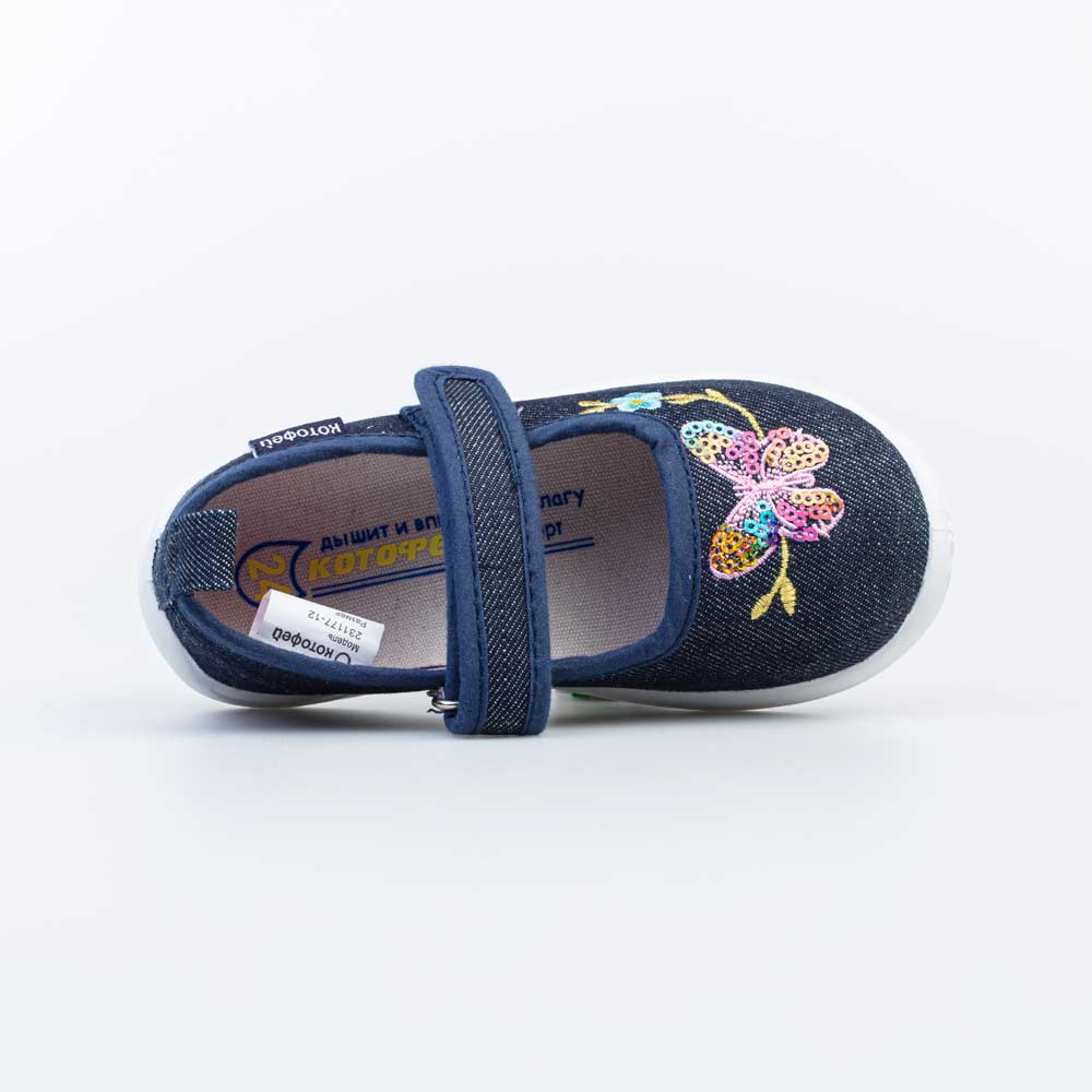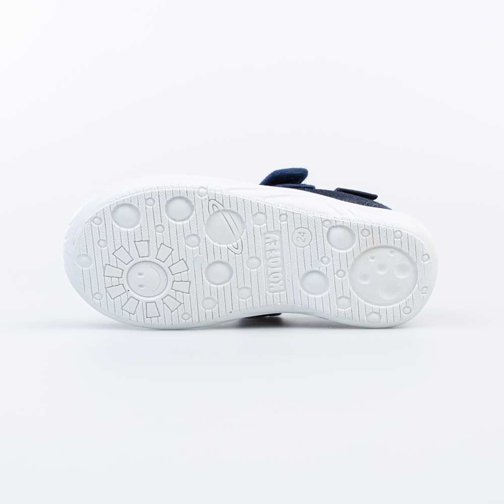 Обувь с текстильным верхом и хлопковой подкладкой. Подошва из поливинилхлорида (ПВХ, PVC) - прочного и лёгкого материала. Выполнена методом прямого прилива к верху обуви: анатомичная, повторяет контур стопы ребёнка. Формованная стелька содержит влагопоглощающий материал на основе переработанного поролона, это позволяет ножкам чувствовать себя комфортно и отлично подходит для носки в помещениях. Крепление - удобное и надежное \'велькро\' (липучка). Очень популярны для детских учреждений, занятий в группах и дома. Такая обувь непременно подойдёт юному непоседе.