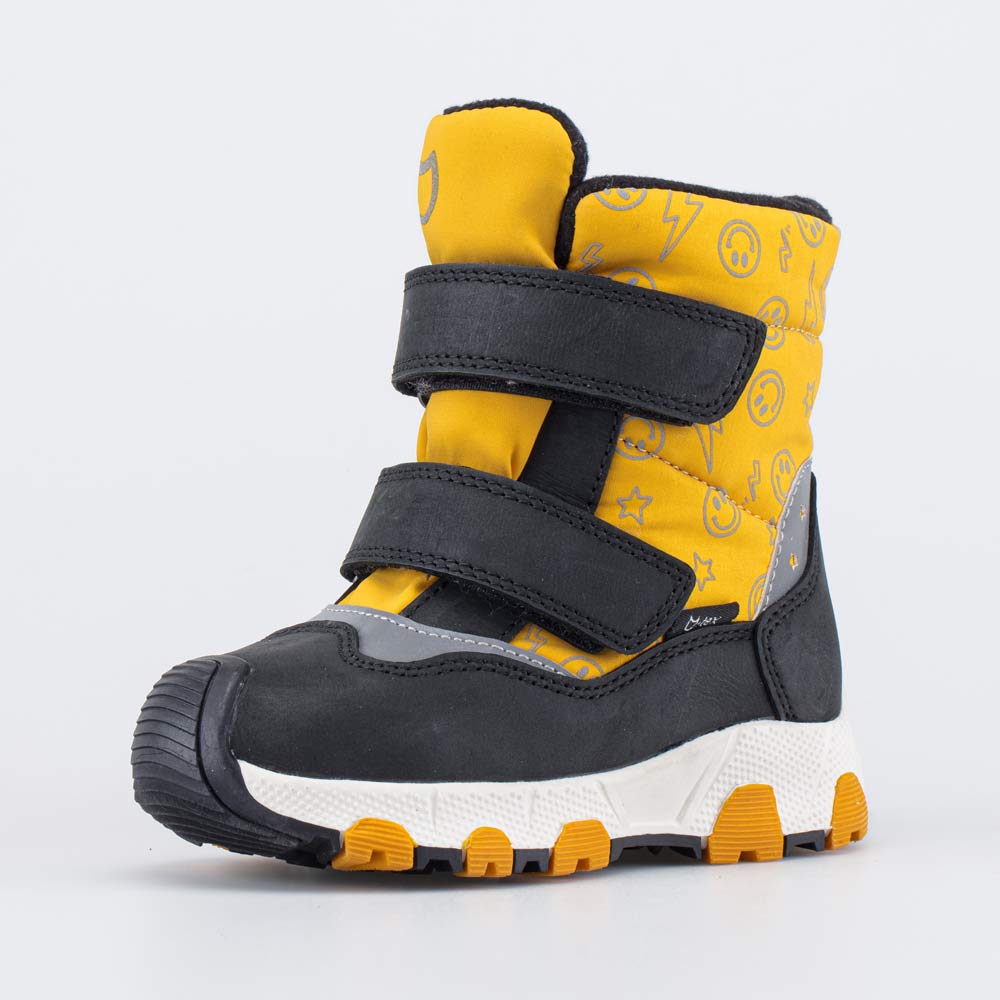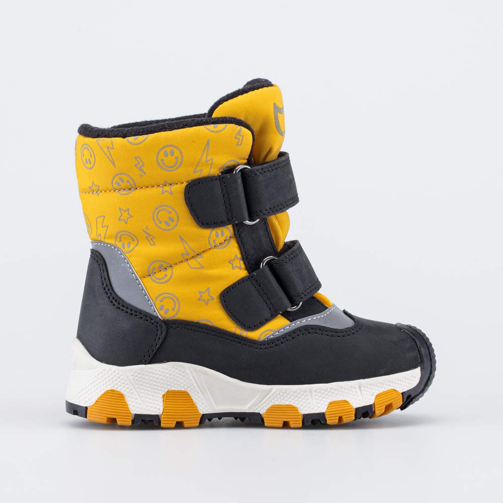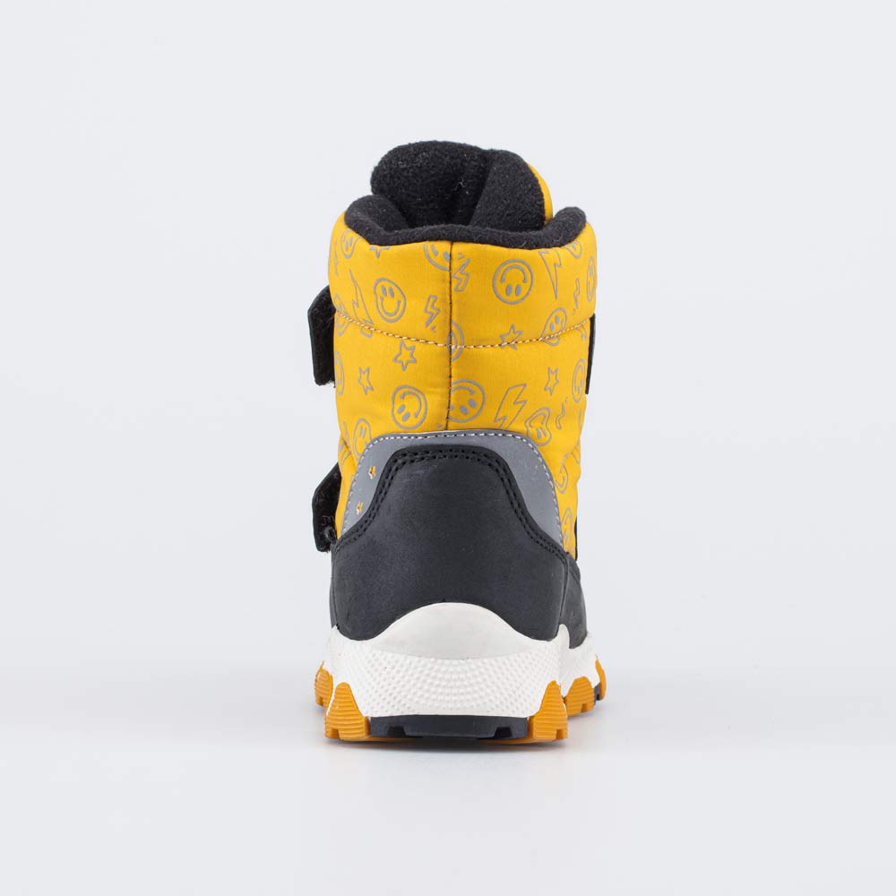 Мембранные ботинки, декорированные принтом в виде смайликов, обеспечивают максимальный комфорт во время активного движения.
