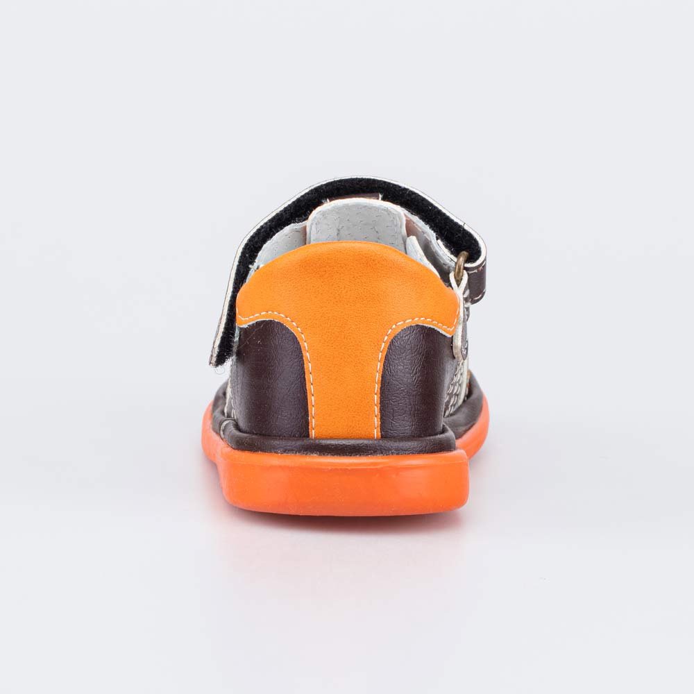 Верх босоножек выполнен из высококачественной искусственной кожи. Закрытый носок защищает пальчики от возможных травм.