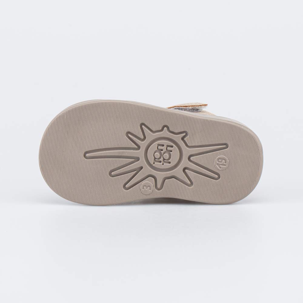 Верх босоножек выполнен из высококачественной искусственной кожи и украшен декоративными элементами. Подкладка и стелька изготовлены из гипоаллергенной и дышащей натуральной кожи светлого оттенка – не придется переживать, что обувь окрасит носочки или колготки.