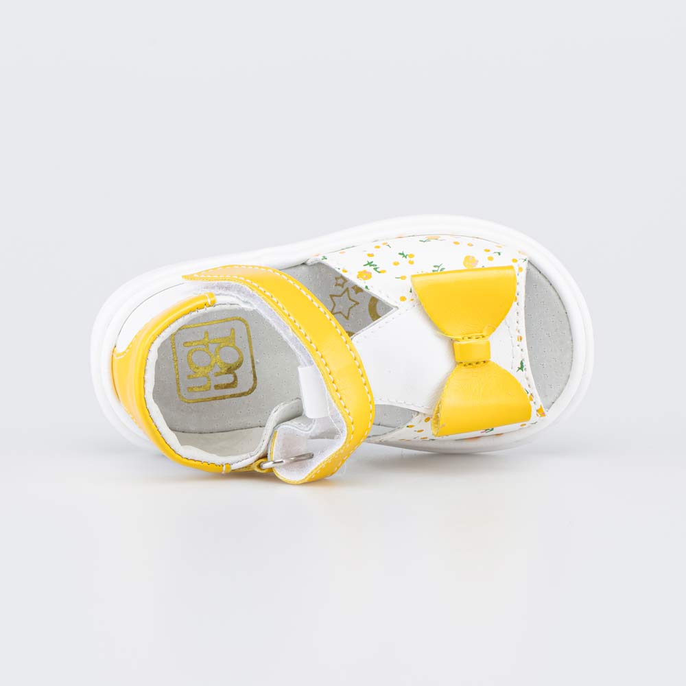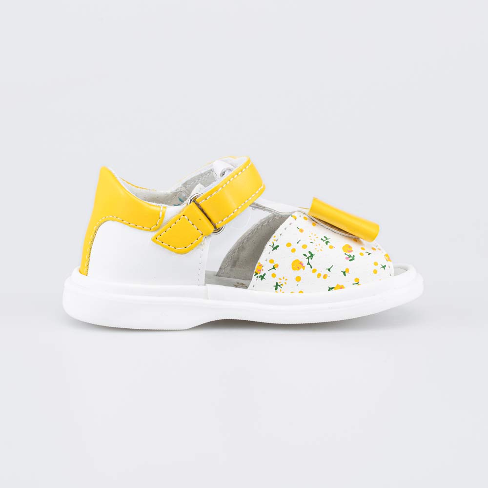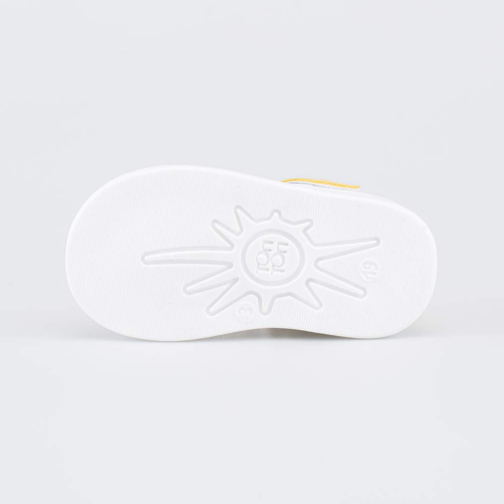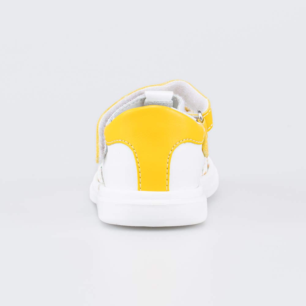 Детские кожаные сандалии с открытым носом и с белой подошвой отлично подходят для летних прогулок, а также в качестве сменной обуви в детский сад или в кружок.