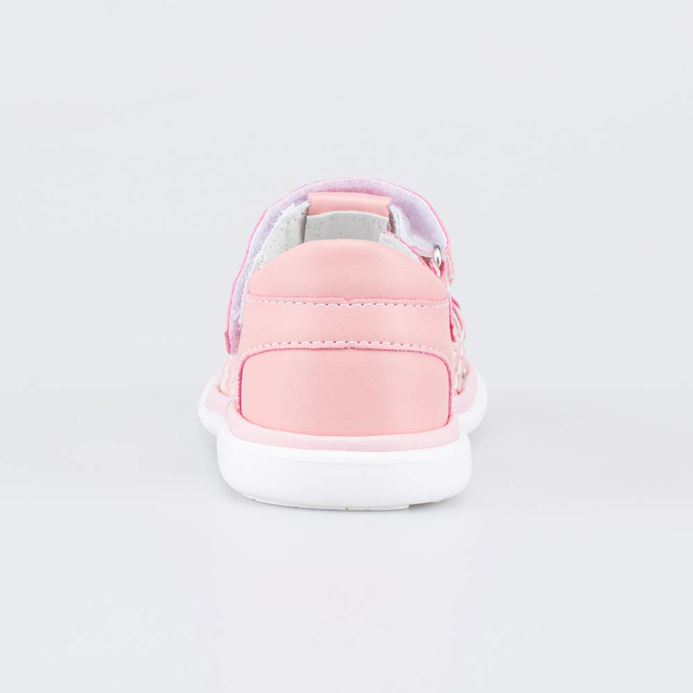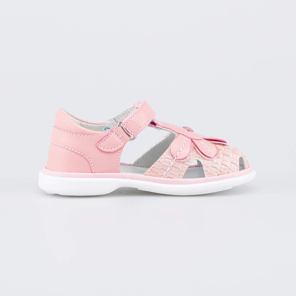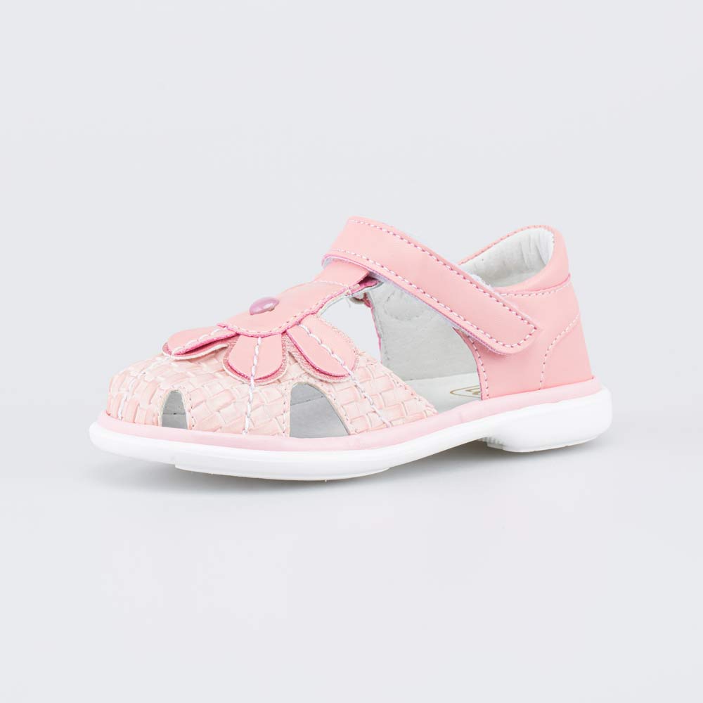 Верх босоножек выполнен из высококачественной искусственной кожи. Закрытый носок защищает пальчики от возможных травм.