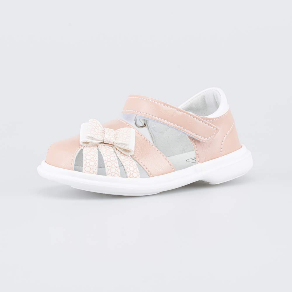 Верх босоножек выполнен из высококачественной искусственной кожи. Закрытый носок защищает пальчики от возможных травм.