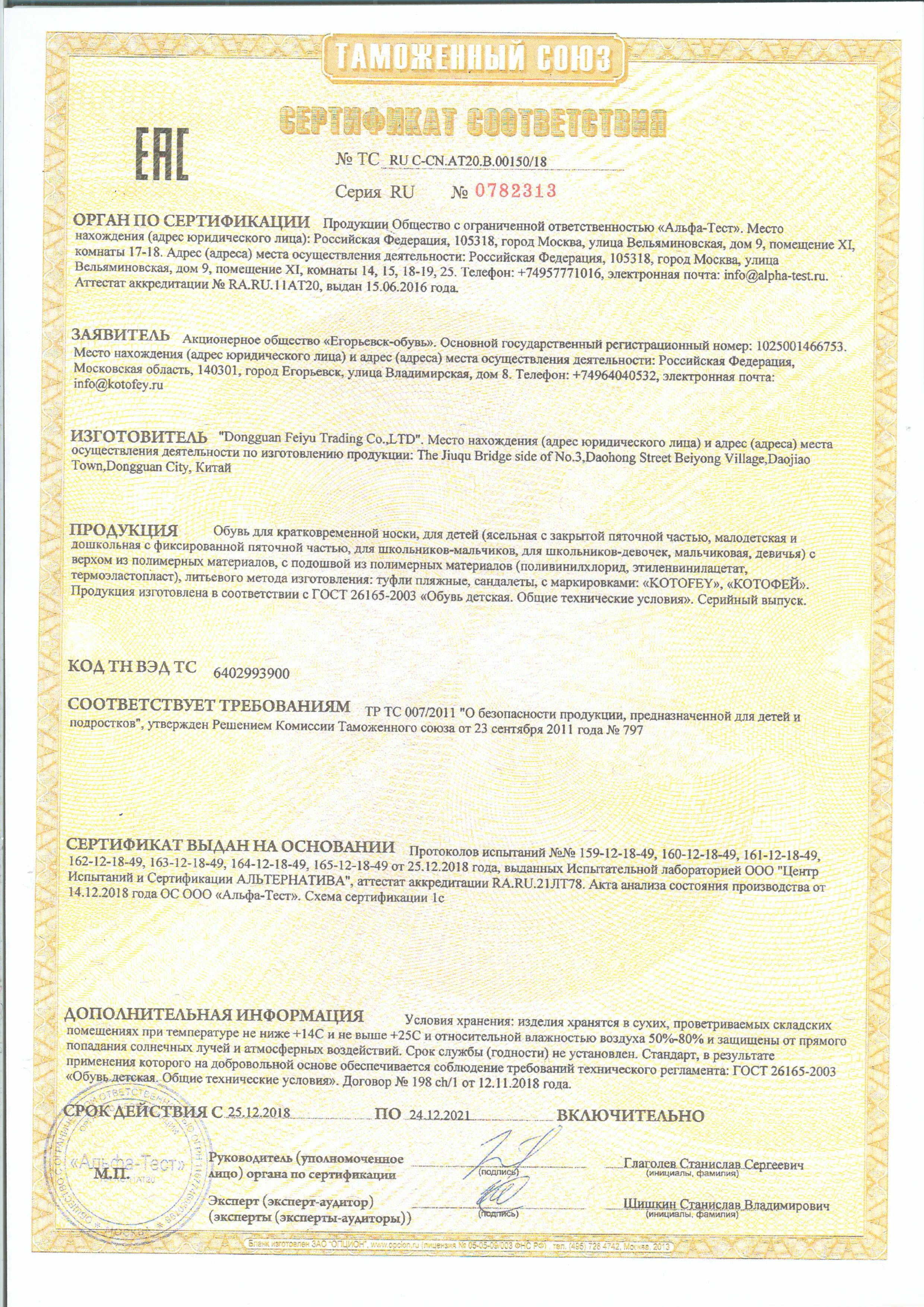ТС RU С-CN.АТ20.В.00150/18