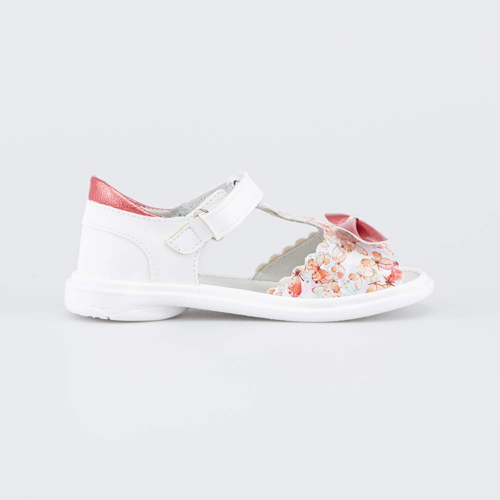 Верх босоножек из высококачественной искусственной кожи украшен бантиком и летним цветочным принтом.