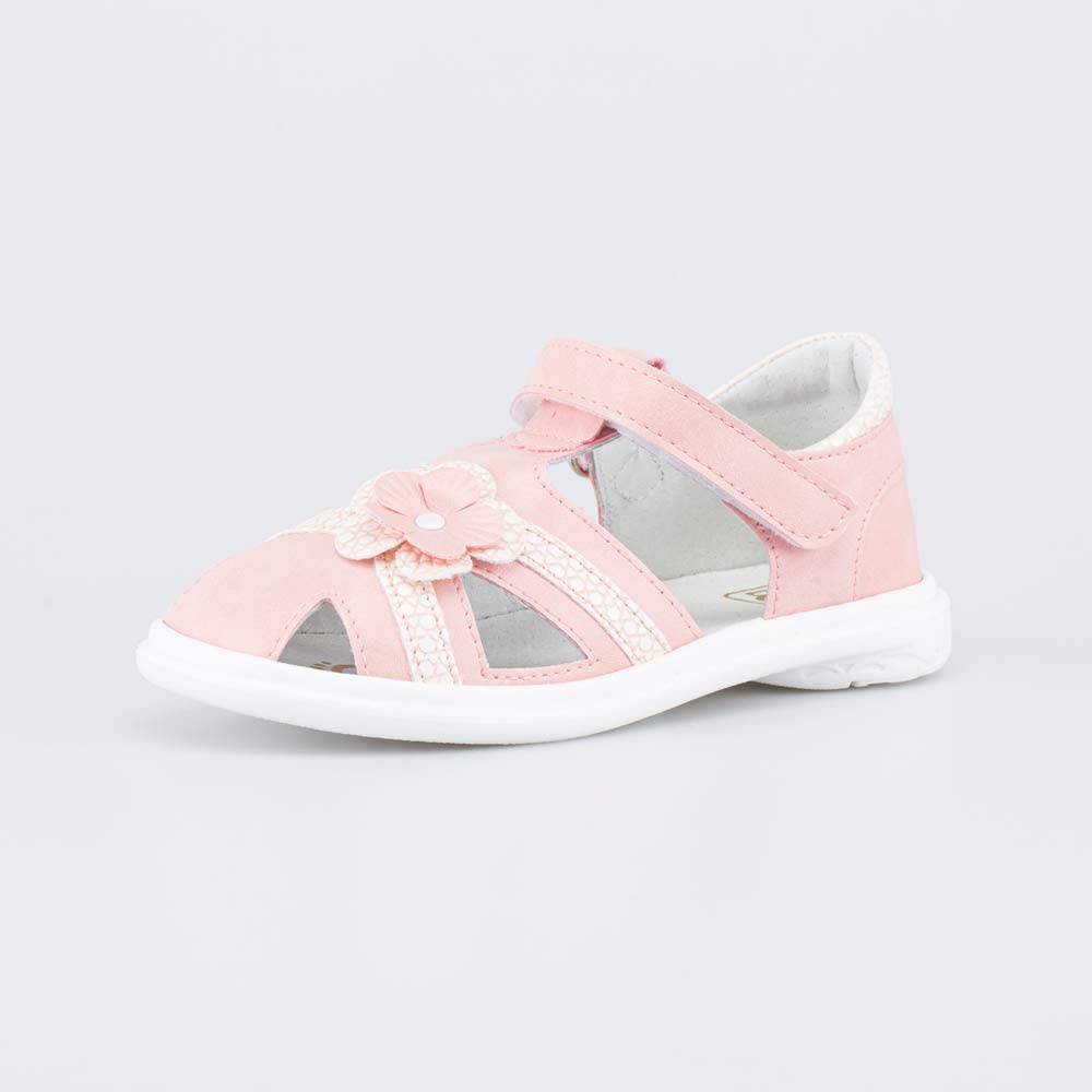 Верх босоножек выполнен из высококачественной искусственной кожи. Закрытый носок защищает пальчики от возможных травм.